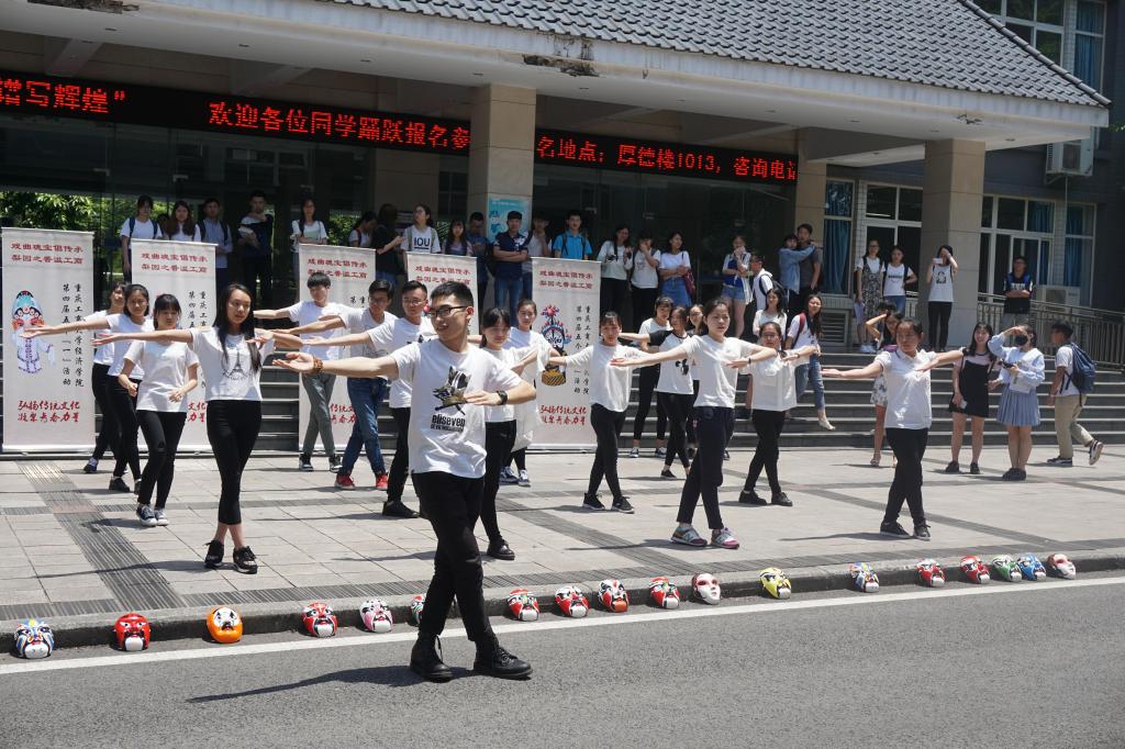 “第一套戏曲广播体操现在开始……”腕花小云手、单拉山膀、弓箭步,5月17日,安博app官网登录_安博anbo(中国)兰花湖片区和南岸校区,30多名活力四射的大学生整齐划一地跳起了戏曲广播操,动感的音乐配上健美、灵动的身段,引得大量过往师生驻足观看,让人眼前一亮。同学们表演的是中国有史以来第一套“戏曲广播体操”,戏曲操创新性的把戏曲程式化动作融入到大众健身理念,以流行动感的音乐配合优美的戏曲基本功动作,2017年1月一经推出便刷爆...