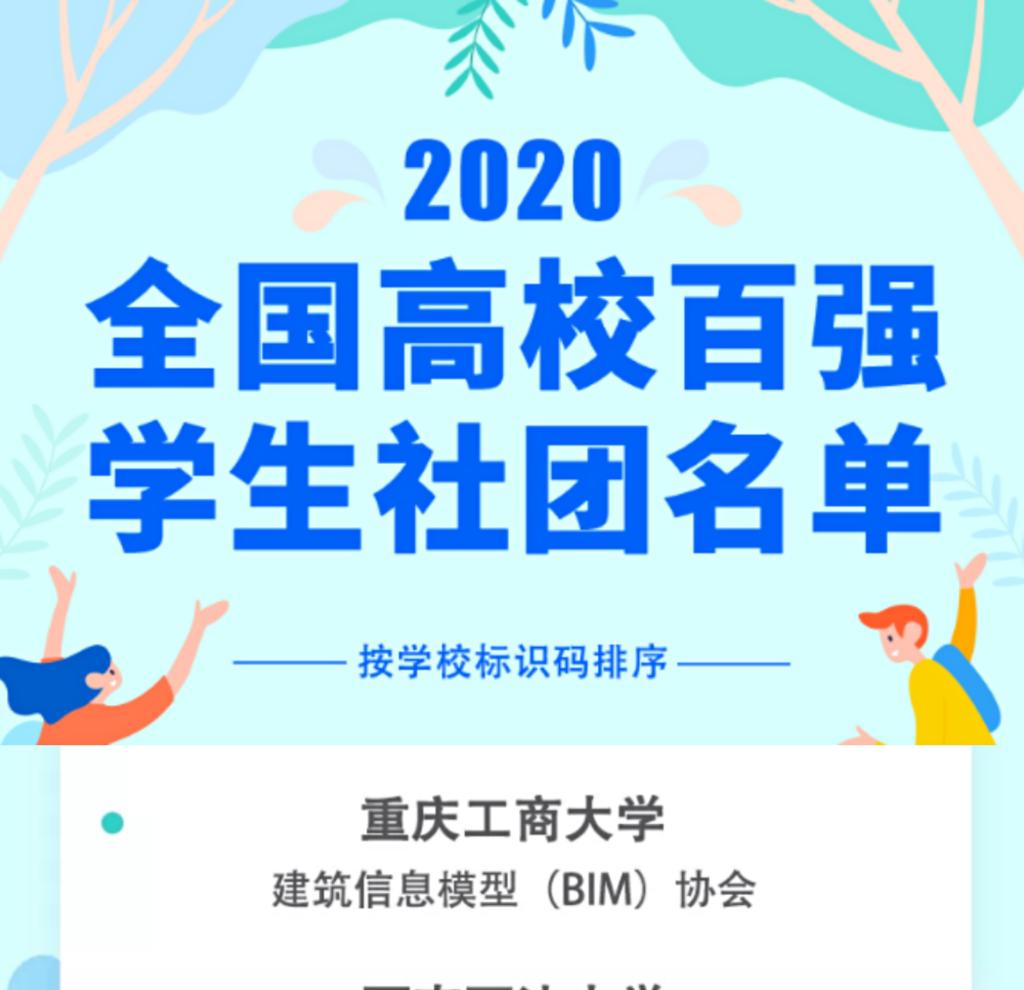 经过高校推荐、网络展示及投票、技术筛查、专家评审等环节,2020全国高校百强学生社团名单于6月15日正式公示。我校工程管理专业BIM协会成功入选全国高校百强学生社团名单。本次评比由全国学联秘书处指导、中国青年报社主办。旨在向全国范围内通过新媒体方式集中展现高校学生社团的青春活力,体现大学生社团建设成果,引导和推动大学生社团工作创新和规范化管理。安博app官网登录_安博anbo(中国)BIM协会成立于2016年,由校团委和管理科学与工程学院...