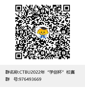 QQ群号:976493669(CTBU2022“学创杯”校赛群)