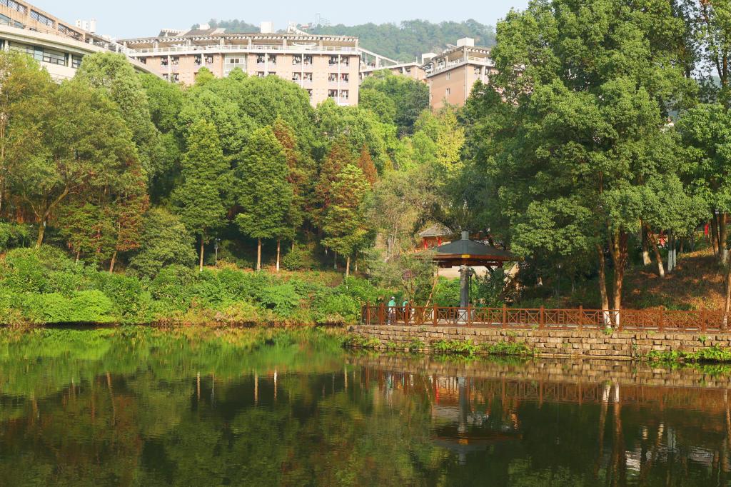 翠湖位于我校南岸校区,东靠南山、西临图书馆,北临学生公寓及厚德楼。在充分遵循生态性、安全性、文化性、功能性及经济性等原则的基础上,学校倾力打造翠湖湿地花园,营造出绿色、活力、安全的湖滨休闲环境,为师生提供了生态宜人的休闲滨水空间。