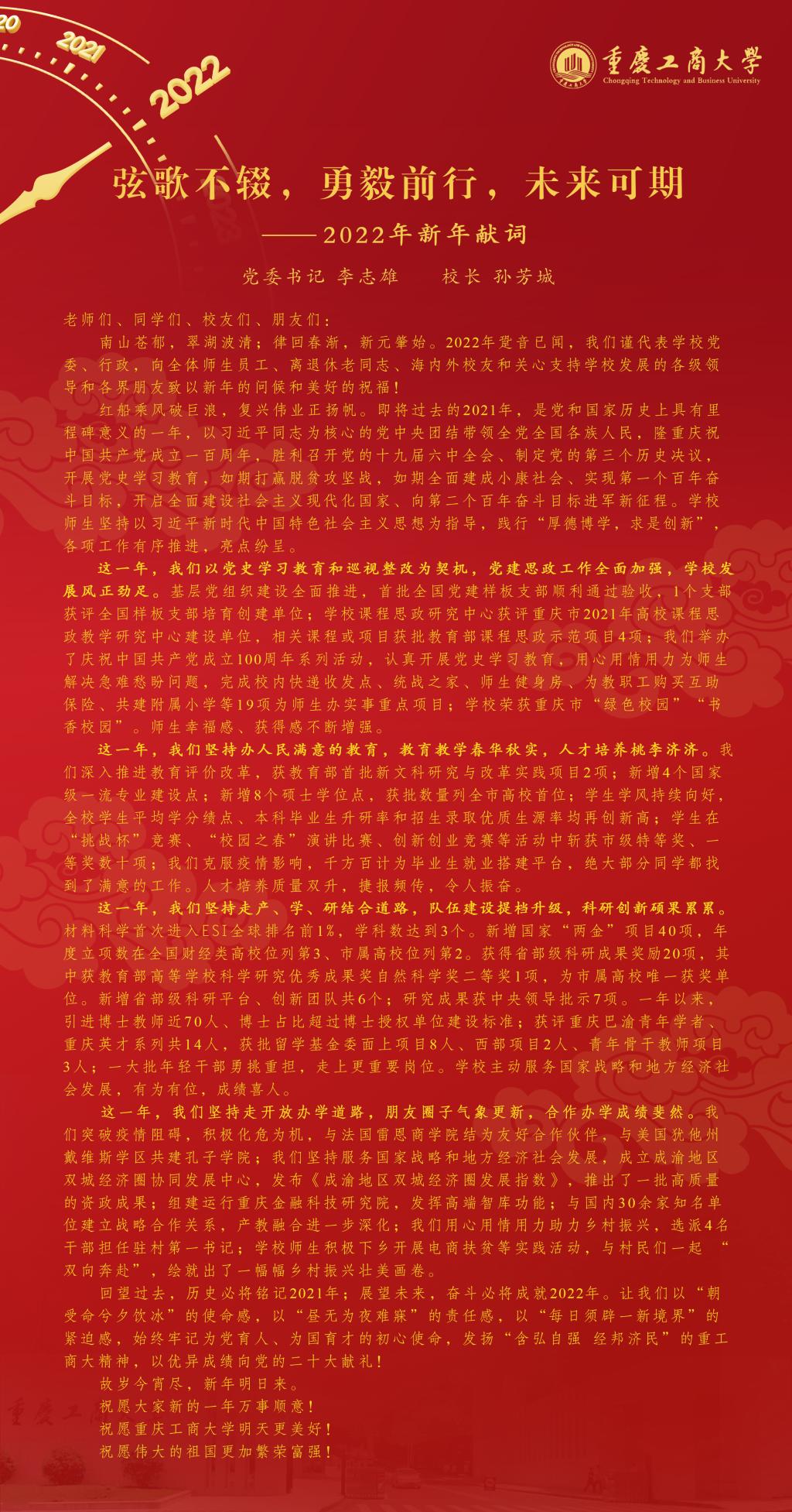 弦歌不辍,勇毅前行,未来可期——2022年新年献词