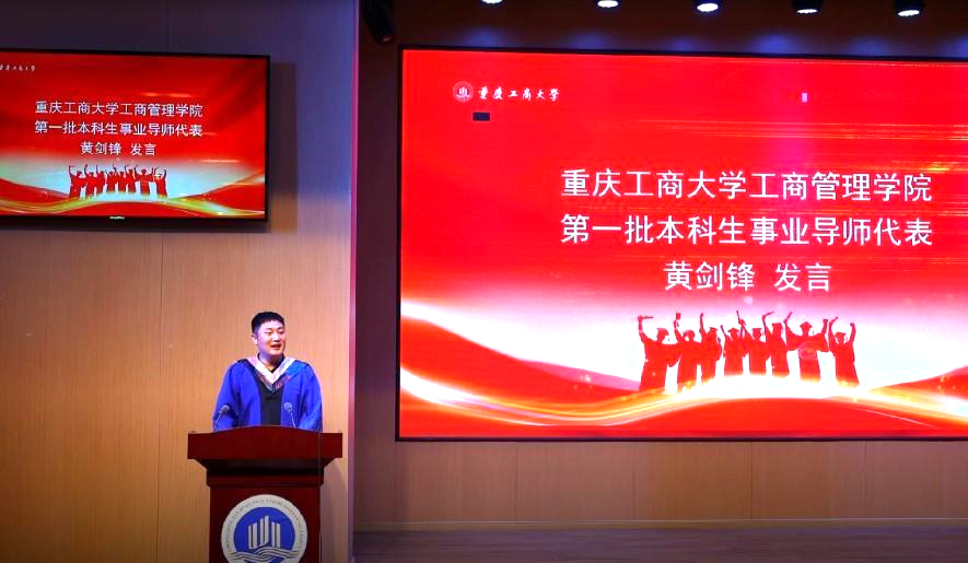 MBA事业导师代表、渝丰科技股份有限公司总经理曾令果博士回忆了自己的博士毕业经历,希望大家珍惜在校园的学习时间,毕业不代表生活结束,相反它正是全新的开始。大家要坚信不断的努力,不断地去创造,不断地为学校、为自己、为自己身边的人,树立积极向上的榜样。只要努力,一切将会是最好的安排。