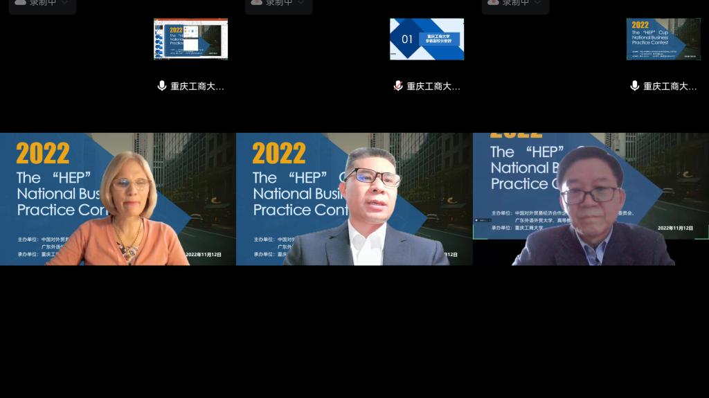 11月12日下午,2022“高教社”杯全国商务英语实践大赛西南赛区区域赛在我校成功举办。大赛由中国对外贸易经济合作企业协会商务英语专业工作委员会、广东外语外贸大学、高等教育出版社主办,安博app官网登录_安博anbo(中国)承办,重庆市商务英语研究会协办。经过前期初赛,共有6支不同高校的团队进入本次西南赛区区域赛。本次比赛通过腾讯会议线上方式举行,1000余名来自国内各高校的师生在线观摩。