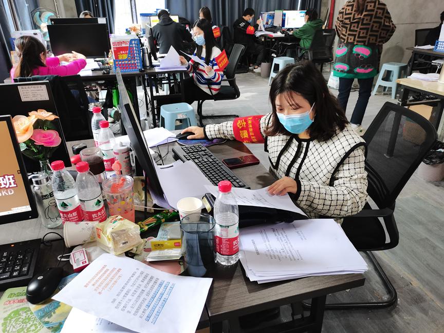 数学与统计学院辅导员郭春霞同志因小区临时管控未能返校,她主动向社区报名,成为抗疫志愿者,参与渝碚路佳和肛肠医院核酸检测点做信息采集工作,为三个小区共564位居民进行了核酸采集信息录入工作。社区志愿服务刚刚结束,脱下防护服的她又转战线上,关注学生在校的情况,及时做好学生情绪安抚及心理辅导工作。