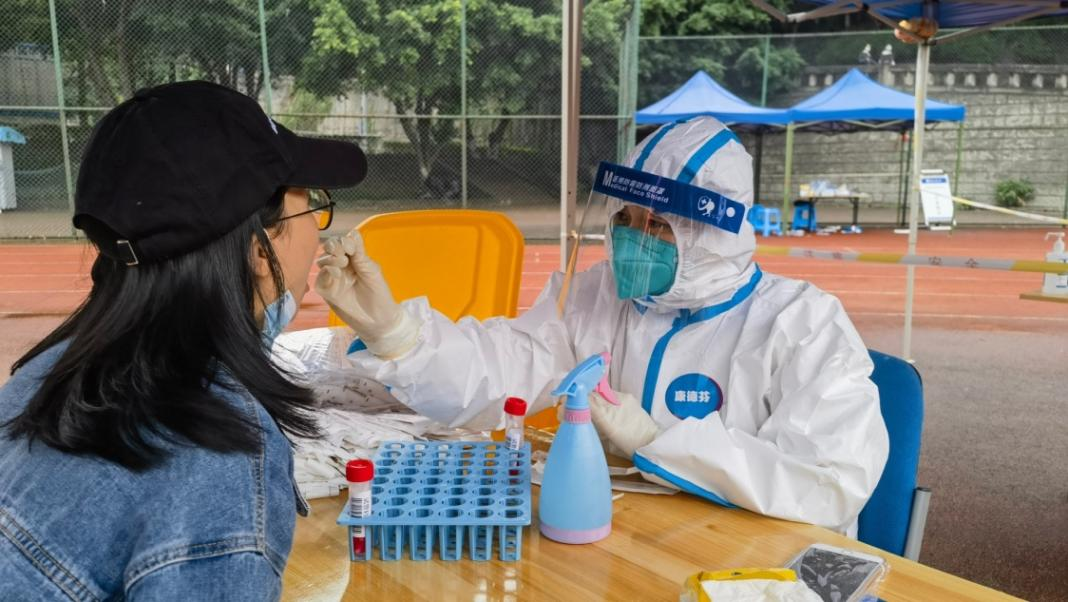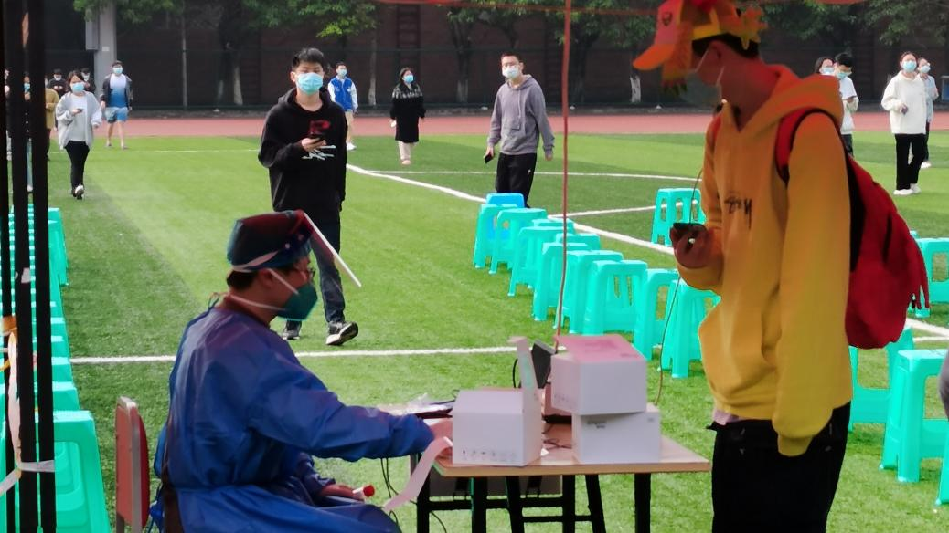 白正梅正在为学生做核酸采样