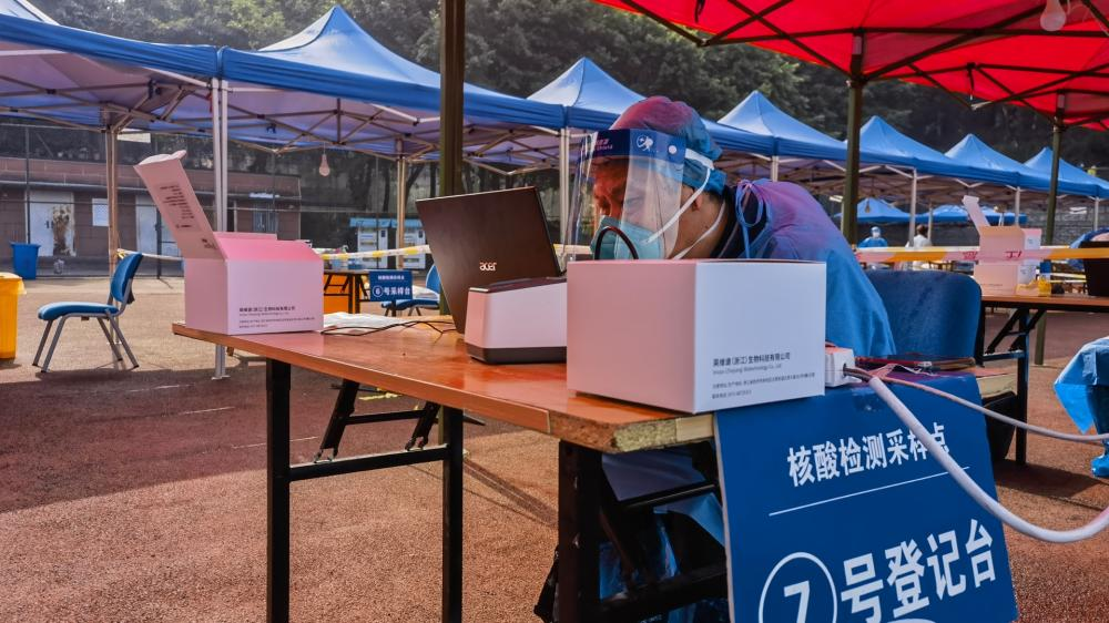 詹川正在为兰花湖片区教职工做核酸采样