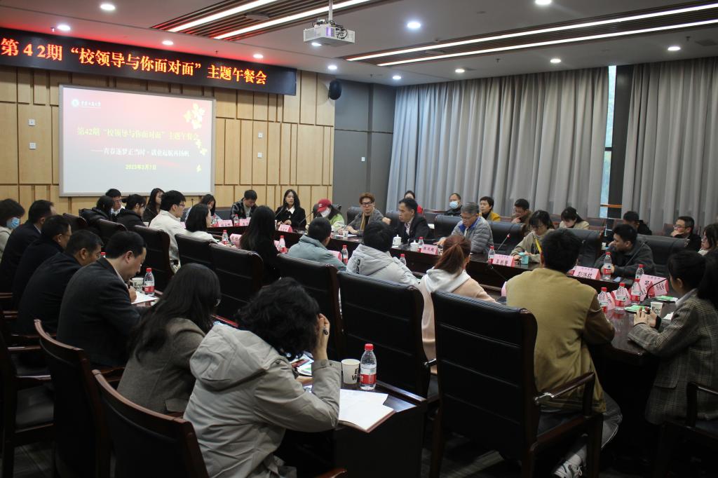 为进一步做好学校2023届毕业生就业工作,更有针对性地为同学们提供精准就业指导和服务,3月7日上午,学校在图书馆五会议室召开了主题为“青春逐梦正当时,就业起航再扬帆”的“校领导与你面对面”主题午餐会。学校党委书记李志雄、副校长陈运超,以及各学院分党委(党总支)书记、相关职能部门负责人、2023届毕业生代表参会。会议由陈运超主持。