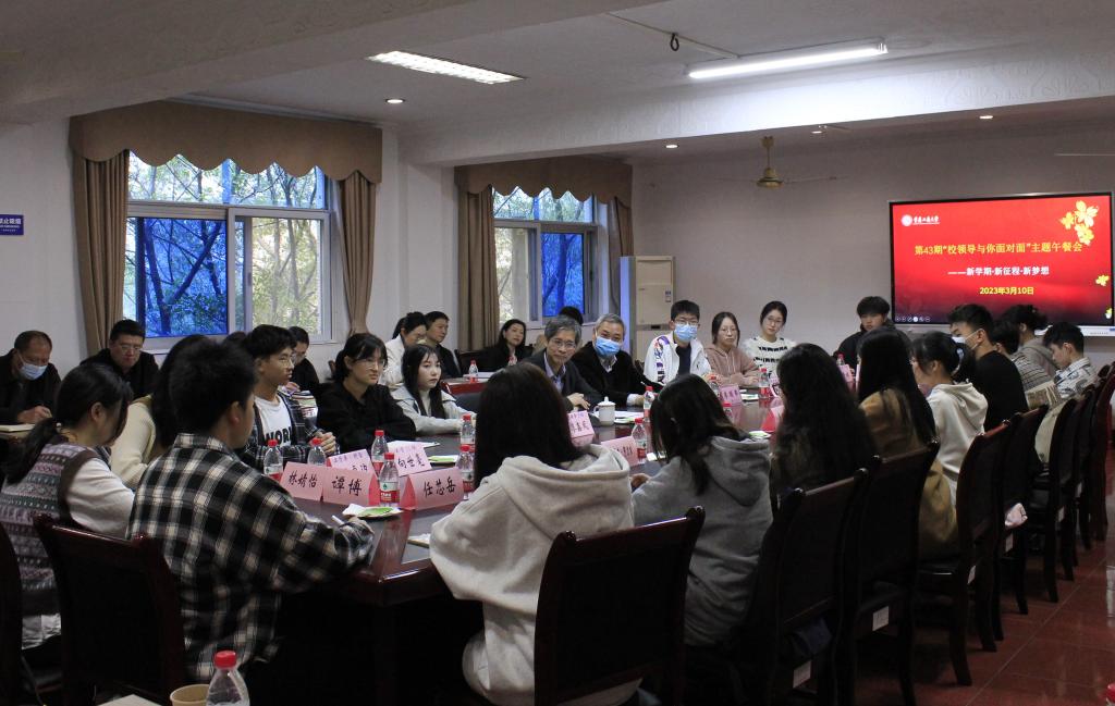 为更好了解大一学生在校学习生活情况,3月10日上午,学校在江北校区举办了主题为“新学期•新生活•新希望”的“校领导与你面对面”主题午餐会。校长孙芳城、副校长李国军,以及相关职能部门负责人、2022级学生代表参会。会议由李国军主持。