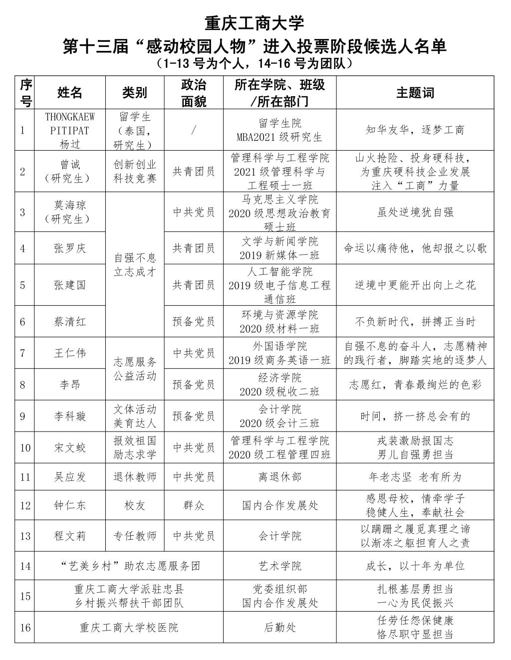 第一轮专家推荐会后,我校第十三届“感动校园人物”评选活动将进入校内现场投票和网络投票的环节。深耕精作,选人育人,希望全校广大师生积极参与,为心目中的感动人物投上珍贵的一票,让温暖延续重工商大,用感人事迹激扬校园。