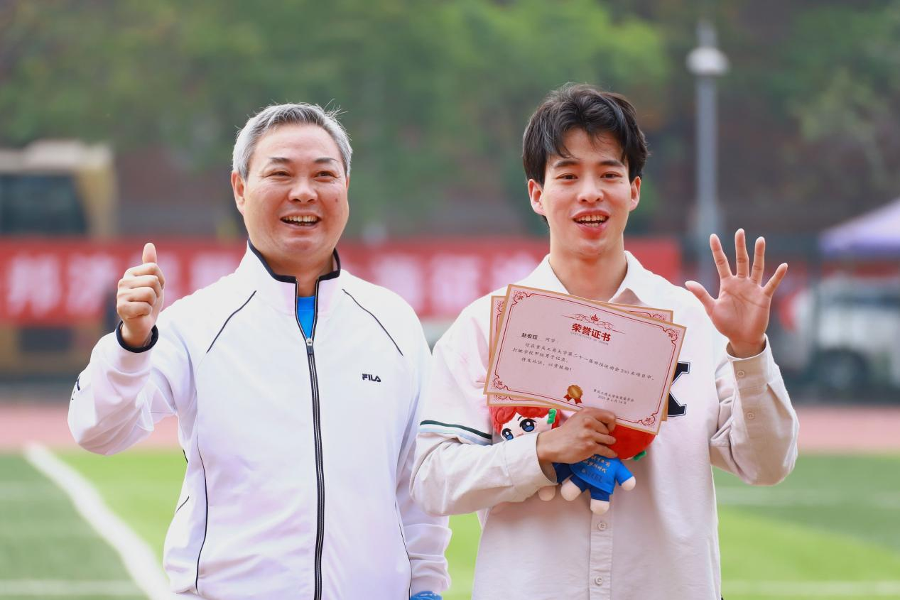 其中,来自研究生院2021级的研究生赵宏珏,分别在学生男子甲组100米和学生男子甲组200米比赛中以10秒78和22秒40的优异成绩打破了学校的历史记录。