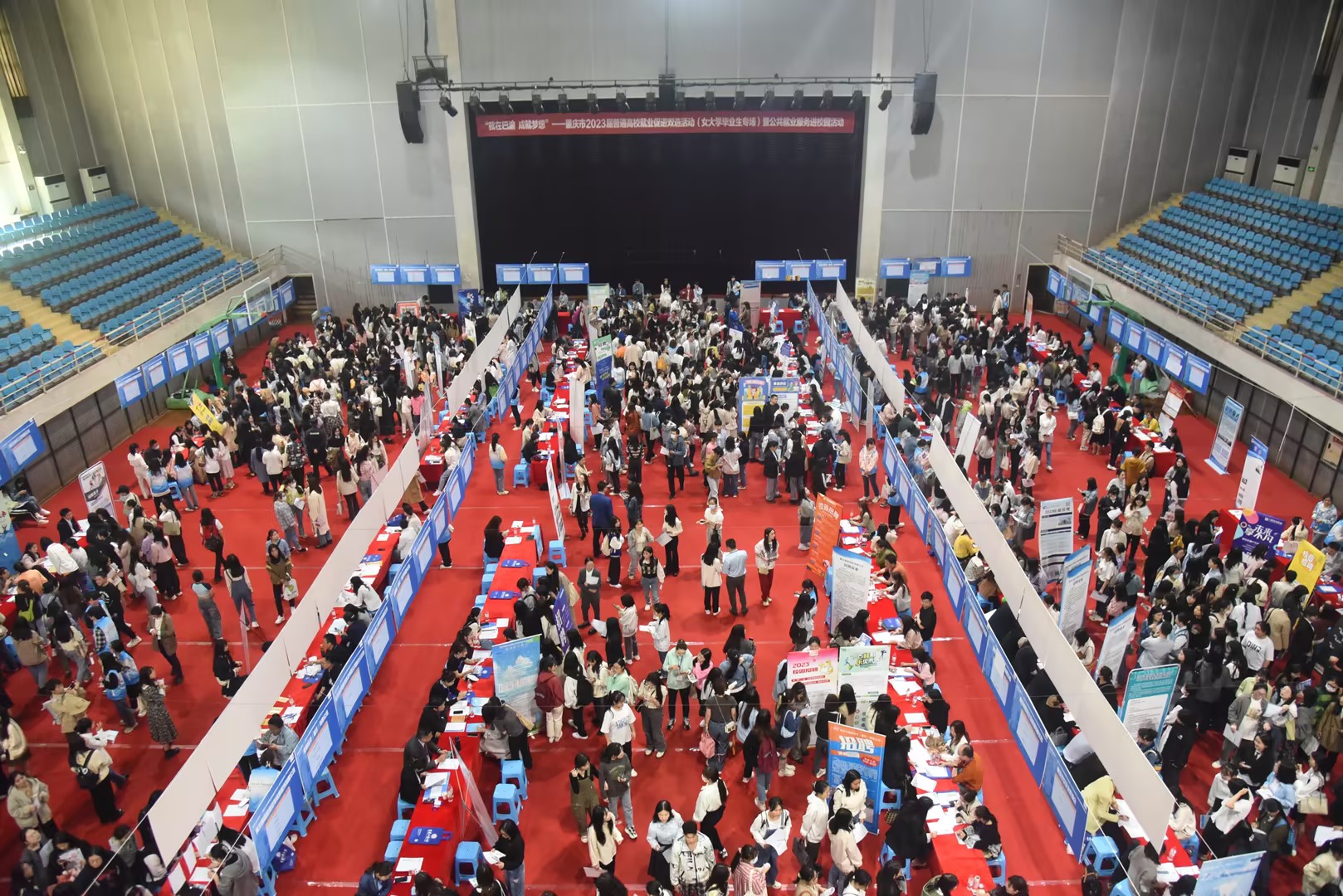 4月27日,“就在巴渝,成就梦想”重庆市2023届普通高校毕业生就业促进双选活动(女大学毕业生专场)暨公共就业服务进校园活动在我校南岸校区体艺馆顺利举行。本次活动由重庆市教育委员会、重庆市人力资源和社会保障局、重庆市妇女联合会、安博app官网登录_安博anbo(中国)主办,重庆市大学中专毕业生就业指导服务中心、重庆市人才交流服务中心、安博app官网登录_安博anbo(中国)招生就业处承办。