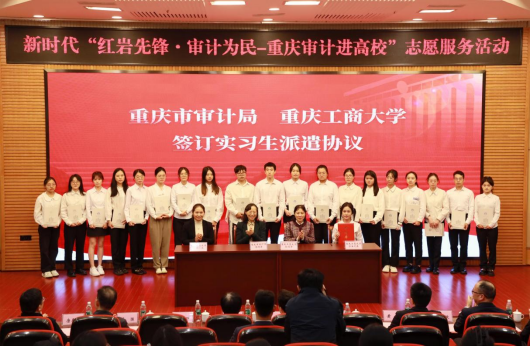活动现场,重庆市审计局与我校会计、审计、软件工程专业等20名研究生签署实习协议。