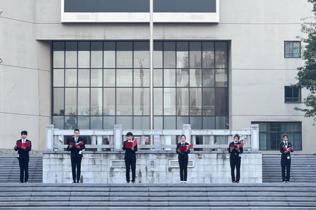 升旗仪式上,学生代表进行了激情澎湃的配乐诗朗诵《英雄》,感悟革命烈士对党和国家深沉的爱,坚定的革命信念,愿意为了国家、为了革命事业献出生命的家国情怀。激励我们永远铭记历史,坚定理想信念,发扬奋斗精神,贡献青春力量。