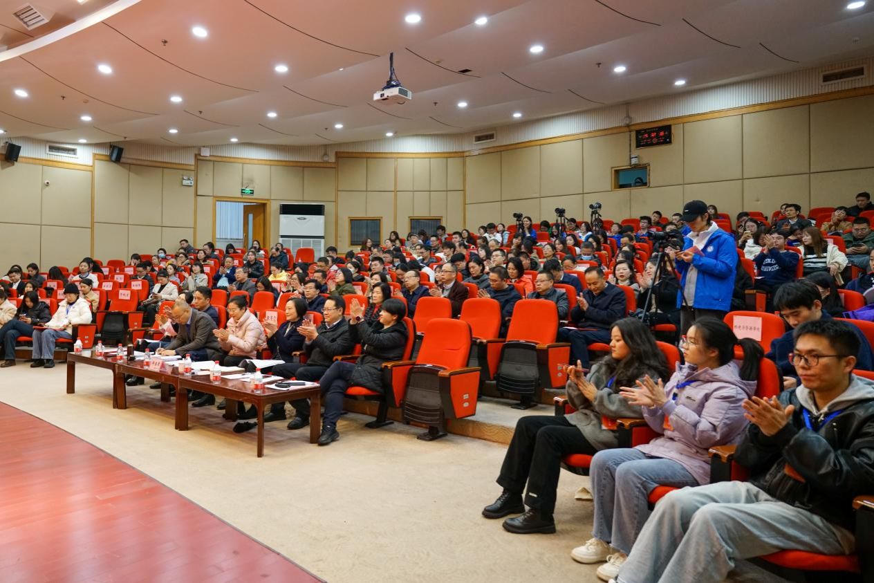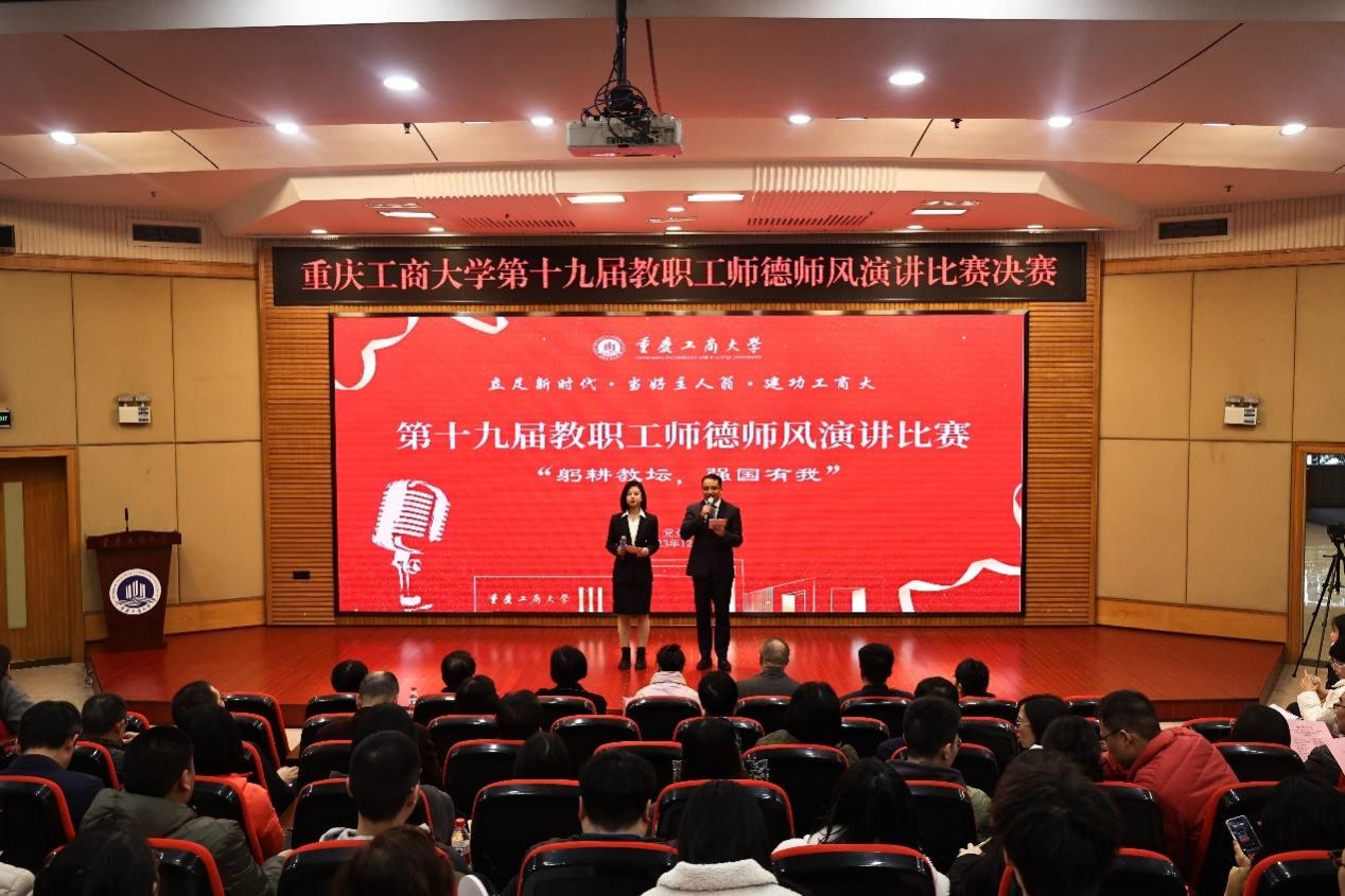 12月1日下午,由校工会、党委教师工作部联合举办的“立足新时代·当好主人翁·建功工商大”系列活动之第十九届教职工师德师风演讲比赛在博智楼7200学术报告厅举行。学校党委书记曾维伦,党委副书记宋豫,学校各学院党委书记、各部门工会主席以及教职工代表共计150余人观看了比赛。比赛邀请了重庆市教科文卫体工会副主席袁菁霞,学校党委常委、组织部部长郑夕春,党委常委、统战部常务副部长陈松,党政办公室副主任、档案馆馆长蒋年韬,党委教师工作部部长、人事处处长林文军,党委宣传部副部长陆嘉,团委副书记胡婧婷担任评委。