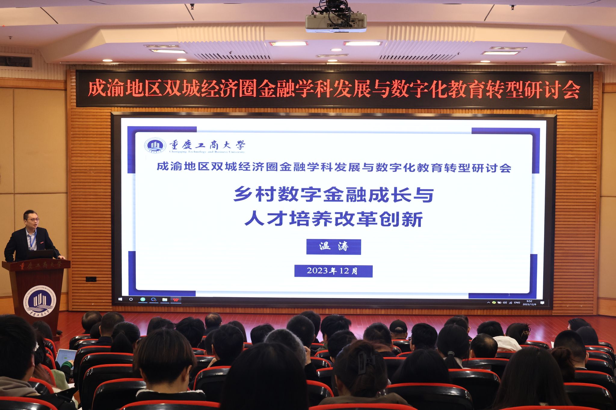 温涛以《乡村数字金融成长与人才培养改革创新》为题演讲。他以农村金融的重要性为切入点,深入分析传统农村金融存在的薄弱环节。他提出,借助数字技术应运而生的数字金融模式是化解传统农村金融诸多难点与痛点的可行性方案。他强调,为了有效化解培养适应需求的乡村数字金融人才匮乏问题,高校要以教育评价改革牵引人才培养改革,加快“计算机类+金融保险类+农业农林管理类”学科专业融合发展。以西部金融中心建设和重庆数字金融发展为契机,大力培养乡村数字金融人才,为全面推进乡村振兴、加快农业强国建设的关键核心领域优先填补人才缺口。
