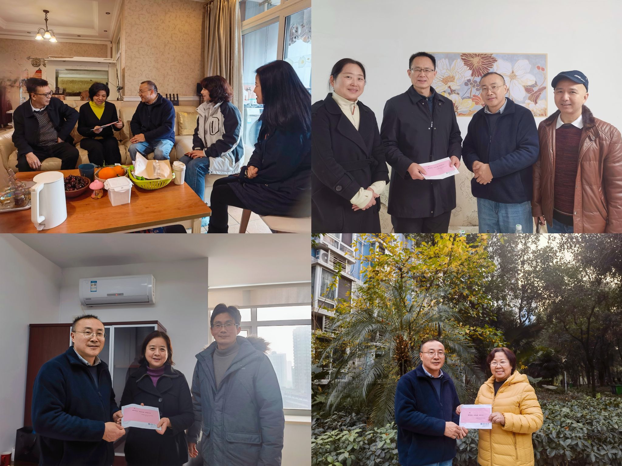 学校民主党派基层组织负责人杨光祥、向夕品、陆冀宁、孟妍、张玉霞、尹元福、周桂林和统战团体负责人王兰、王建明、曾晓松等共同参加走访慰问活动。