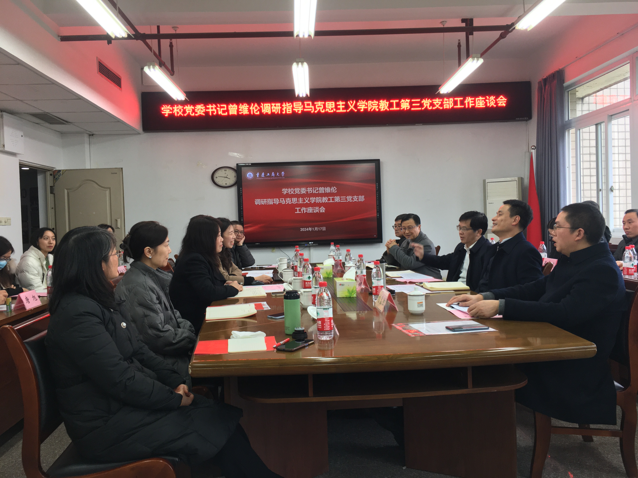 1月17日下午,学校党委书记曾维伦到马克思主义学院调研教工第三党支部党建工作。学院班子成员、教工第三党支部全体党员、学院入党积极分子代表参加了会议。会议由学院党委书记宋明江主持。