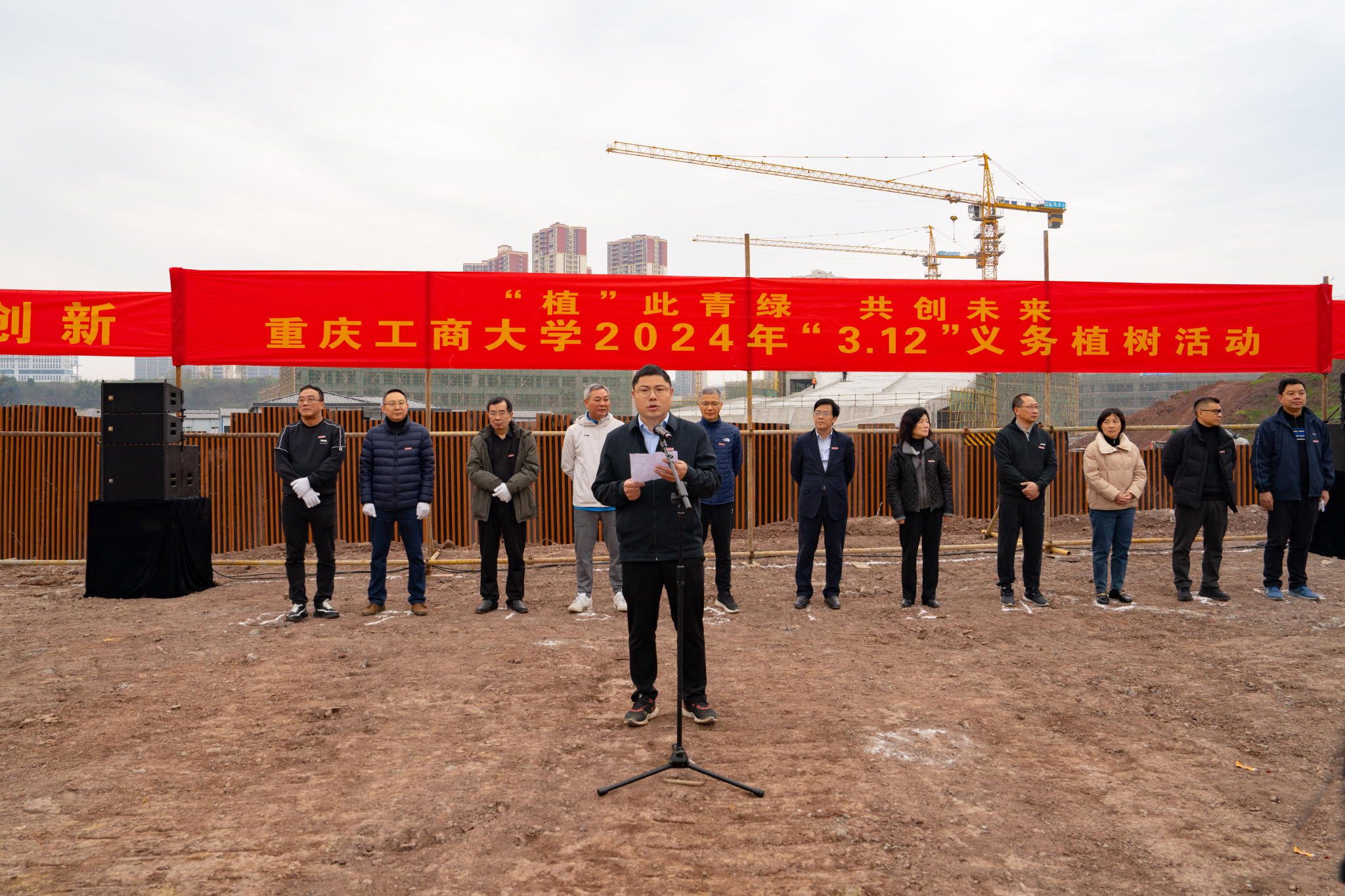 曾维伦在致辞中指出,开展此次活动是学校深入贯彻落实习近平生态文明思想,牢固树立和践行绿水青山就是金山银山发展理念的重要举措。2023年,习近平总书记在参加首都义务植树活动时强调,“当前和今后一个时期,绿色发展是我国发展的重大战略,开展全民义务植树是推进国土绿化、建设美丽中国的生动实践。”十年树木,百年树人。今天,我们在校园种下的绿植不仅寄托着师生、校友对学校的美好祝愿,也是师生、校友与学校最深情的纽带。植树造林功在当代、利在千秋。他号召大家为重庆市建设美丽中国先行区,打造人与自然和谐共生的现代化市域范例贡献重工商大人力量。