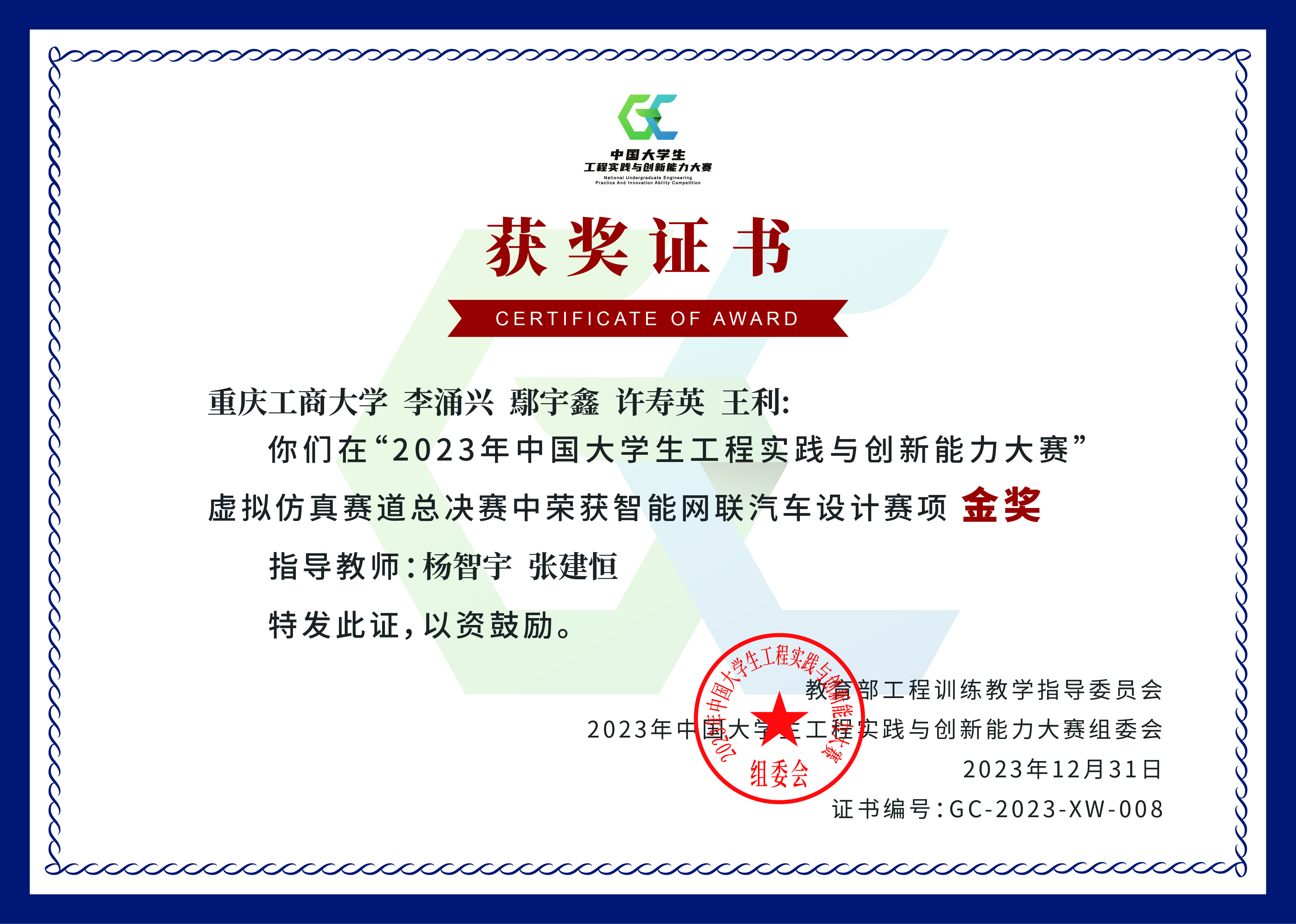 我校在2023年中国大学生工程实践与创新能力大赛总决赛中获奖名单
