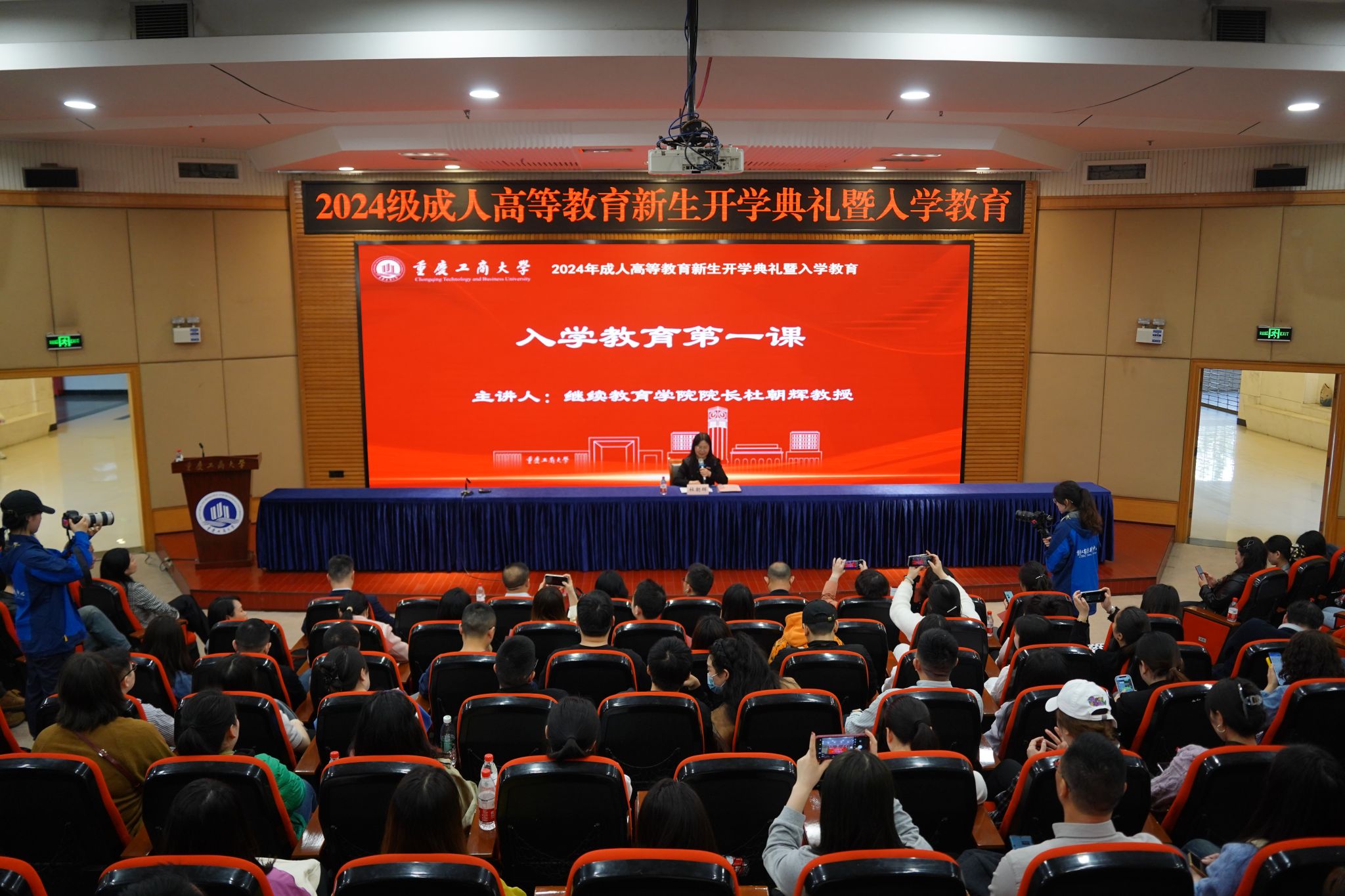 任毅代表学校欢迎成教新同学加入安博app官网登录_安博anbo(中国)大家庭,并简要介绍了学校在人才培养、学科科研、师资力量、社会服务和协同发展等方面取得的优异成绩。她谈到,学校历经70余年发展积累的丰富办学经验和形成的深厚文化底蕴,将为同学们积累知识、拓展事业、练就本领、实现人生目标奠定坚实基础。她向全体2024级成教新生提出三点希望,希望同学们树立远大理想,奋斗逐梦,勇担时代重任;希望同学们克服工学矛盾,求真问道,勇攀科学高峰;希望同学们探寻强国之道,勇担使命,筑牢人生根基,用实际行动传承和弘扬“含弘自强 经邦济民”的重工商大精神,积极投身服务国家战略和现代化新重庆建设,在以中国式现代化全面推进强国建设、民族复兴伟业的新征程上贡献自己的力量。