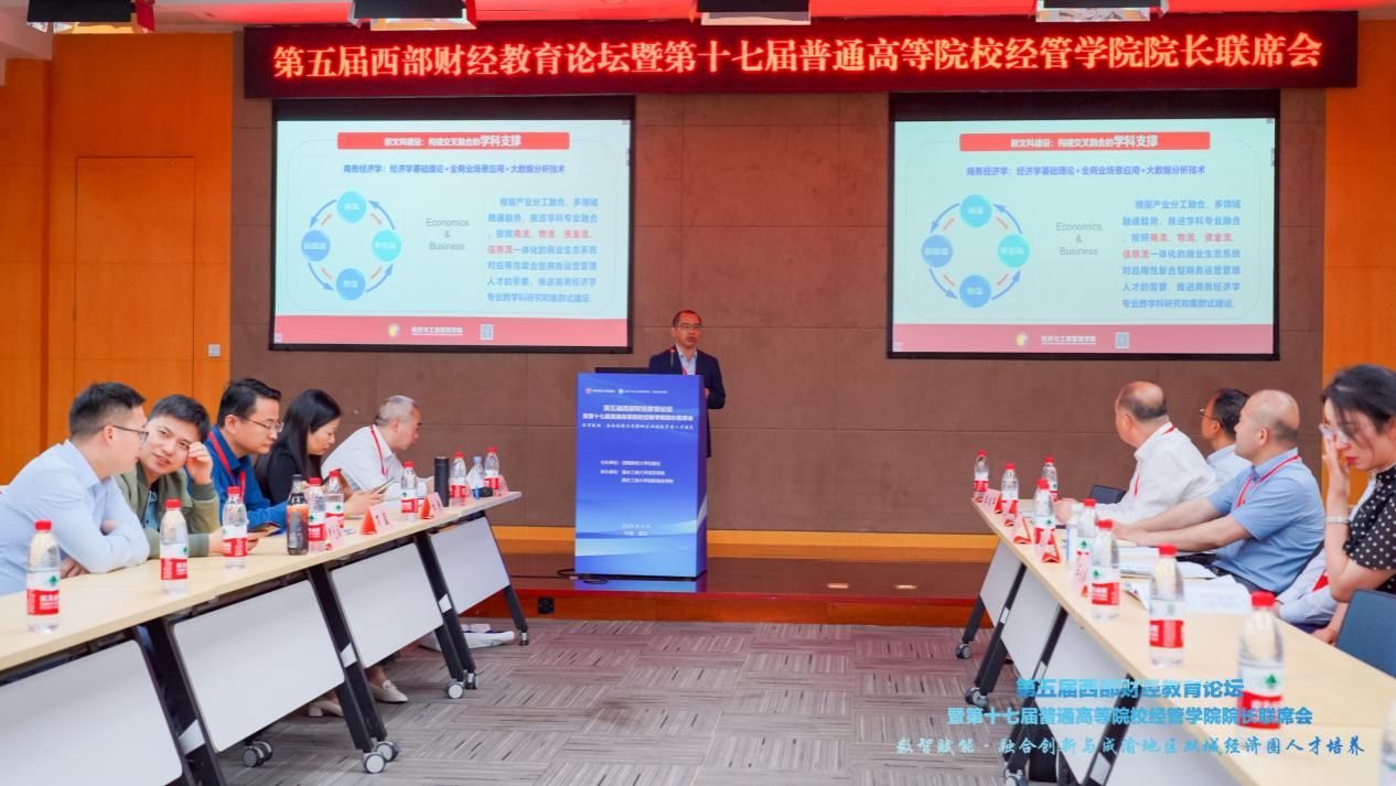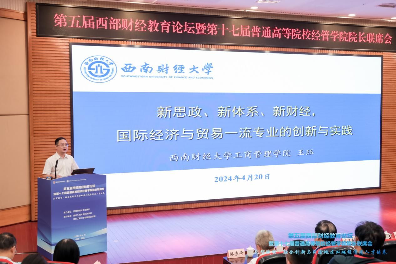 4月19至21日,第五届西部财经教育论坛暨第十七届普通高等院校经管学院院长联席会在安博app官网登录_安博anbo(中国)举行。本次会议由西南财经大学出版社主办,安博app官网登录_安博anbo(中国)经济学院、创新创业学院承办,来自山东、广东、广西、贵州、青海、西藏以及川渝地区56所普通高等院校经管学院的院长、专家学者、系主任及教师代表200余人参会,他们围绕主题“数智赋能·融合创新与成渝地区双城经济圈人才培养”,共同探讨新时代背景下财经教育的机遇与挑战,共谋经济赋能新策略。安博app官网登录_安博anbo(中国)党委常委、副校长李敬主持了开幕式。