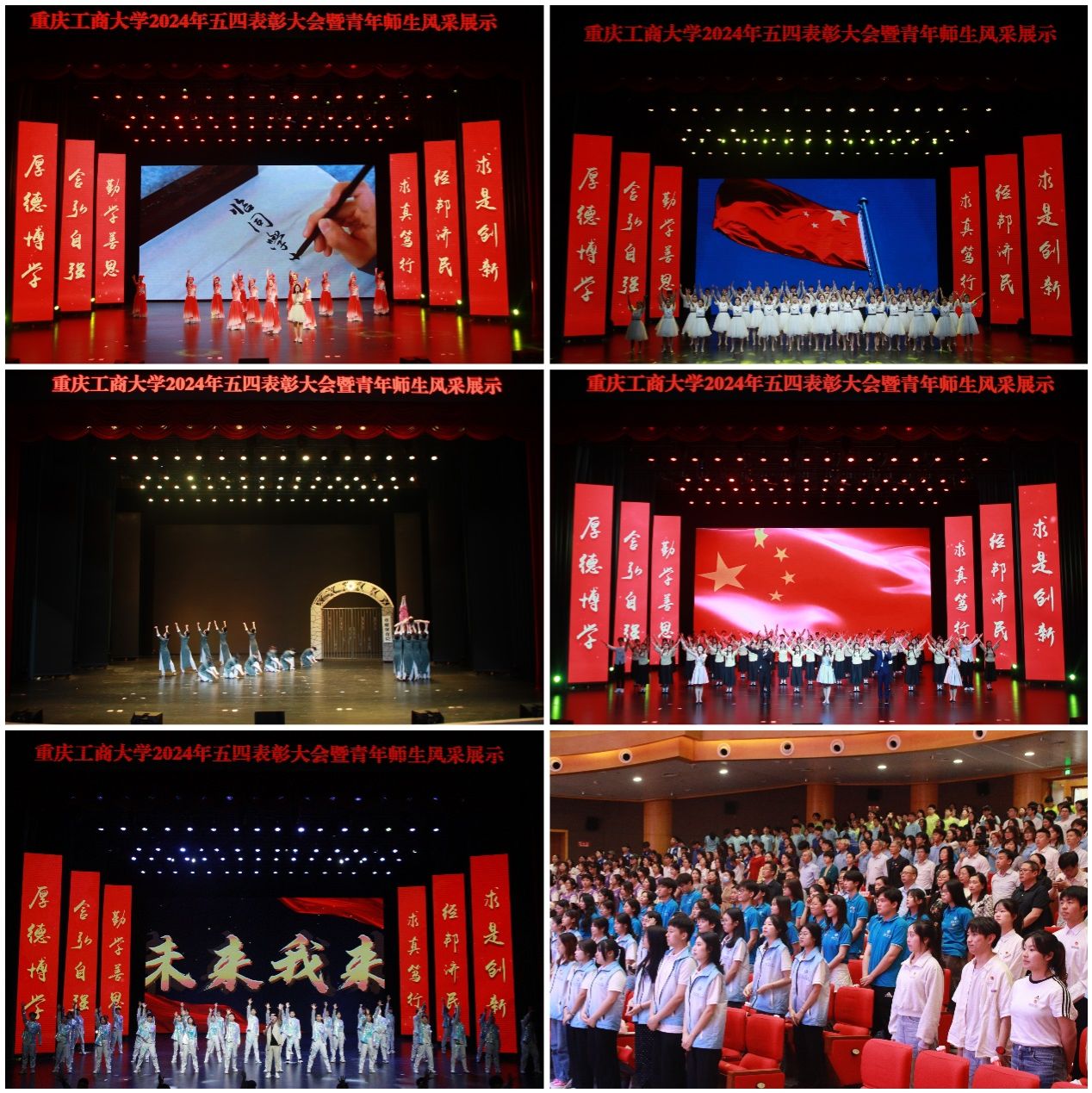 在五四青年节即将到来之际,为学习贯彻习近平总书记关于青年工作的重要思想,深学笃行习近平总书记视察重庆的重要讲话重要指示精神,传承和发扬五四精神,集中展现重工商大青年师生的时代风貌,表彰模范先进,发挥榜样作用,4月29日下午,我校2024年五四表彰大会暨青年师生风采展示在剧场隆重举行。校党委书记曾维伦,校党委副书记宋豫,党委常委、副校长陈运超,党委常委、副校长张波,党委常委、副校长李国军,党委常委、纪委书记、重庆市监委驻学校监察专员张海燕,党政办、纪检监察室、组织部、宣传部、统战部、学工部、人事处、教务处、研工部、招就处、校团委负责人,关工委负责人,各学院党委(党总支)书记、副书记,各学院团委书记(副书记),青年教师和青年团员代表,共计1000千余人参会。