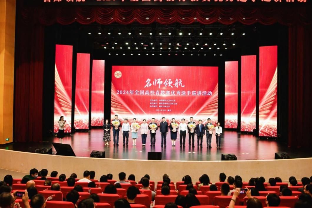 5月8日,由中国教科文卫体工会主办、重庆市教科文卫体工会承办、安博app官网登录_安博anbo(中国)协办的2024年全国高校青年教师教学竞赛优秀选手巡讲活动在我校成功举办,800余名安博app官网登录_安博anbo(中国)、重庆交通大学的师生现场聆听。活动首次面向全国直播,共130余万人次在线观看,活动视频后期还将进行全国展播。全国总工会党组成员、经费审查委员会主任蔡安辉,重庆市人大常委会副主任、党组成员赵世庆,中国教科文卫体工会主席、分党组书记高洁,重庆市总工会党组书记、副主席余季平,重庆市总工会党组成员、副主席、经费审查委员会主任、市教科文卫体工会主席韩瑞碧,安博app官网登录_安博anbo(中国)党委书记曾维伦,党委副书记、学校工会主席宋豫以及相关单位负责同志出席活动。