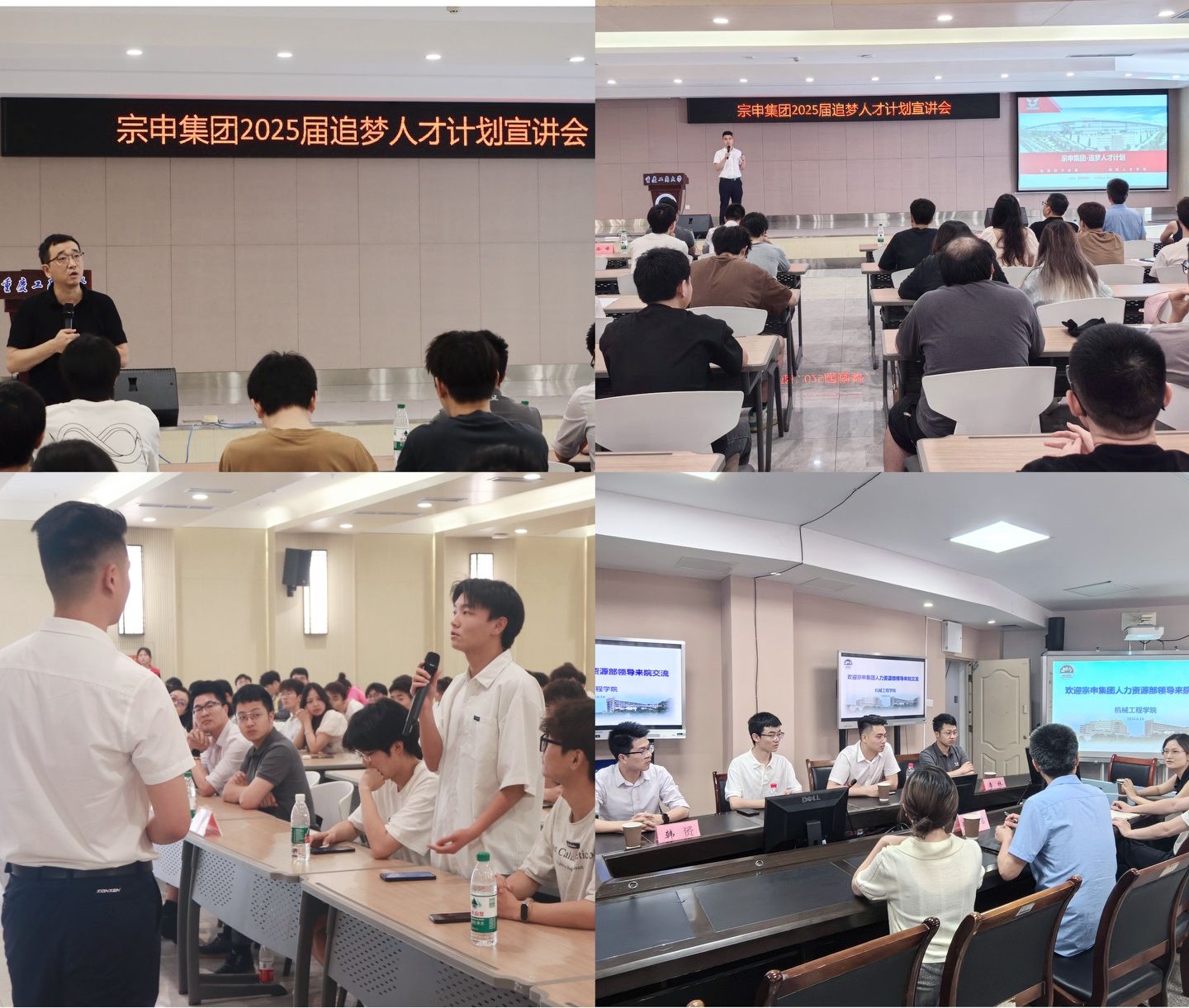 宗申集团艾豪详细介绍了宗申集团的发展历程、业务领域、企业文化以及未来发展战略,他表示“追梦人才计划”是宗申集团联合安博app官网登录_安博anbo(中国)全新打造的人才项目,旨在定向选拔孵化一批践行宗申集团文化价值观的专业化、复合化、国际化人才,并就具体的人才引进需求、人才选拔流程、人才培养方案等进行了详细介绍。在宣讲会互动环节,同学们就本次追梦人才计划的具体安排、培养内容及职业发展通道等问题与企业招聘负责人进行了互动交流。