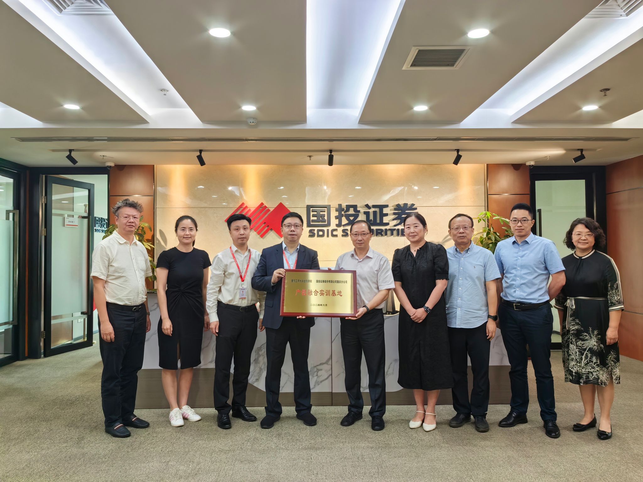 6月18日上午,学校党委常委、副校长张波带队到国投证券重庆分公司访企拓岗并推进产教融合育人工作。金融学院班子、专任教师及学生代表40余人参加授牌仪式暨学生实习实训活动。国投证券有限公司重庆分公司总经理丁洪一、业务支持中心负责人车涛、综合管理部负责人吴晓飞等出席。