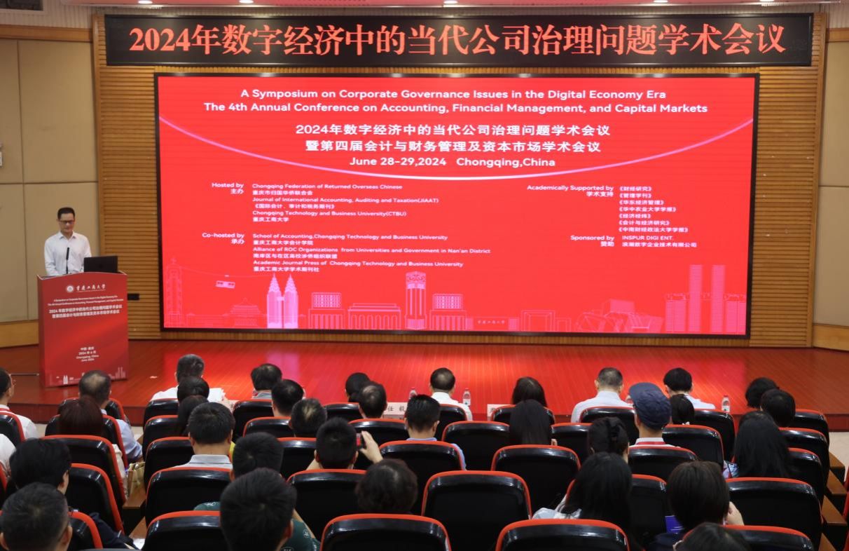 6月29日,2024年数字经济中的当代公司治理问题学术会议暨第四届会计与财务管理及资本市场学术会议在我校举行。会议由重庆市归国华侨联合会、《国际会计、审计和税务》期刊(JIAAT)和我校共同举办,我校会计学院、南岸区与在区高校涉侨组织联盟和我校学术期刊社共同承办。来自美国、加拿大、英国、日本、韩国、澳大利亚等世界各地和国内各大高校的专家学者以及相关学术期刊主编、审稿人、编辑团队等,共同探讨数字经济时代下会计、审计、财务与公司治理的变革与挑战,聚焦如何建立有效的治理框架以确保信息技术的恰当应用,关注资本市场参与者如何应对信息技术进步和数字化带来的变化。我校党委常委、副校长任毅出席会议并致辞。