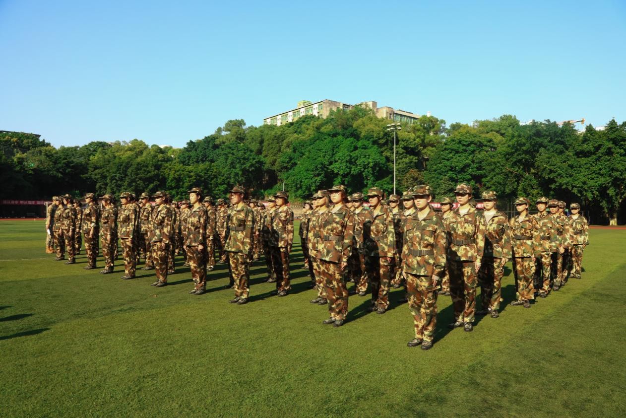 初阳跃上操场的边际,学子身着迷彩服,心潮澎湃。