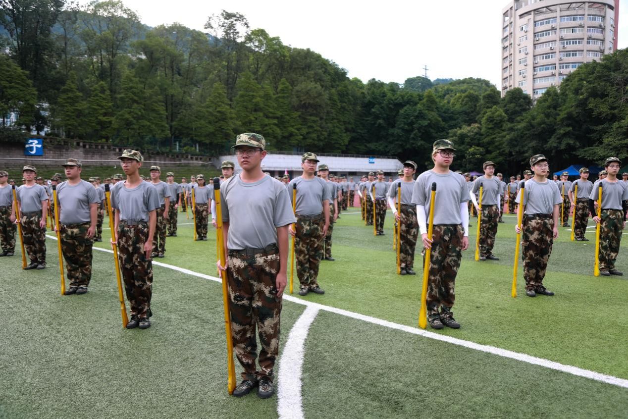 操场上,一群朝气蓬勃的重工商大学子,身着统一的迷彩服,踏着坚定的步伐,用汗水书写着青春最亮丽的篇章。