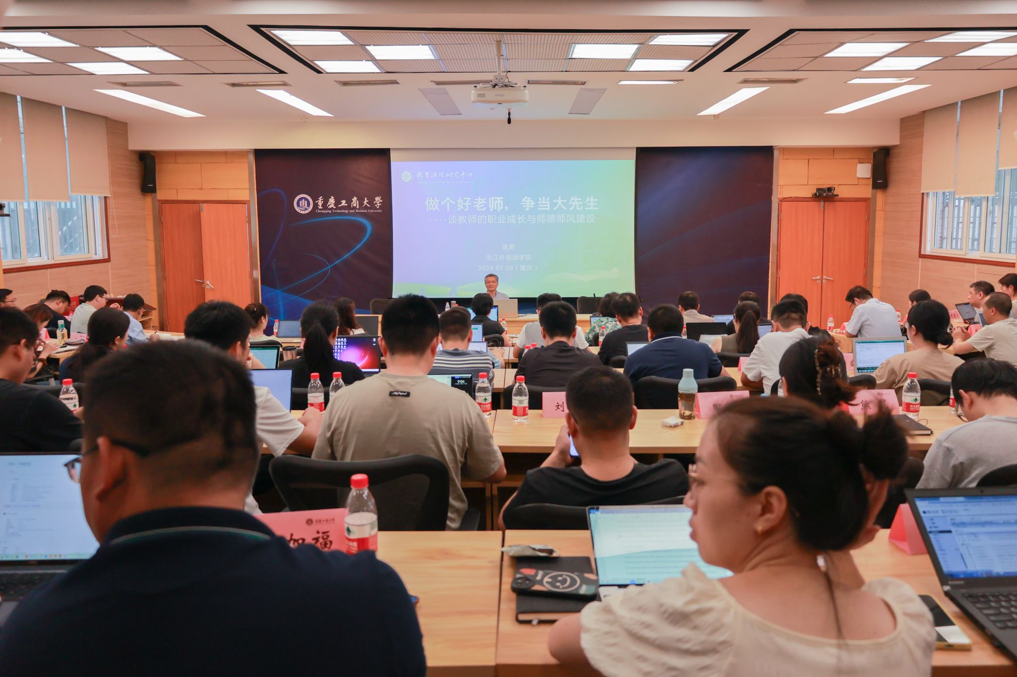 此次研训邀请到校内外知名专家学者,以深入学习贯彻党的二十大精神、习近平总书记视察重庆重要讲话重要指示精神为引领,以落实立德树人根本任务、涵养高尚师德为重点,将国情研修与素质能力提升相结合,以党的创新理论、师德师风、教师成长发展等多个方面为主要内容,采取“校内+校外”“理论+实践”相结合的教学方式,为大家搭建了一个交流思想、碰撞智慧的平台。学校各教学学院系主任、副主任代表,40周岁以下海外归国青年教师代表,聘任青年菁英岗位的教师代表等参加培训。