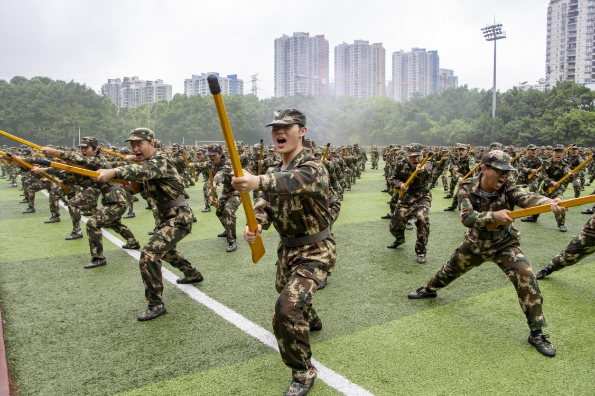 精彩的汇报展示紧随其后。格斗术方阵,动作迅猛如虎,每一次出击都展示出军训学子蓬勃朝气;捕俘刀方阵,“匕首出鞘” 崭露锋芒,刀起是飒爽,刀落是坚定,运动场上的他们意气风发、虎虎生威;队列操方阵,队形变换自如,整齐划一,个个精神饱满、昂首挺胸、气宇轩昂;应急棍术方阵,棍影翻飞、动作连贯,彰显我校学子的蓬勃朝气和昂扬锐气;军体拳方阵,每一次出拳,都力道带风;每一次回旋,都铿锵有力;战术表演方阵,钢枪在手,威风赫赫,动作干脆利落,每一步的踏出都赢得了现场欢呼掌声一片;刺杀操方阵,呐喊声中透露出坚定,每一次挥刀都精准有力,动静之间,尽显军人敢打敢拼的战斗作风。