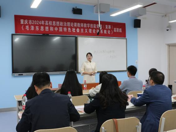 10月13日上午,由重庆市委教育工委、市委宣传部、共青团市委主办,市高校思想政治理论课教学指导委员会“毛泽东思想和中国特色社会主义理论体系概论”课分教学指导委员会、安博app官网登录_安博anbo(中国)承办的重庆市2024年高校思想政治理论课教师教学技能竞赛《毛泽东思想和中国特色社会主义理论体系概论》复赛在我校涵智楼举行。来自重庆市24所本科院校、30所高职院校的54名选手参加了本次比赛。