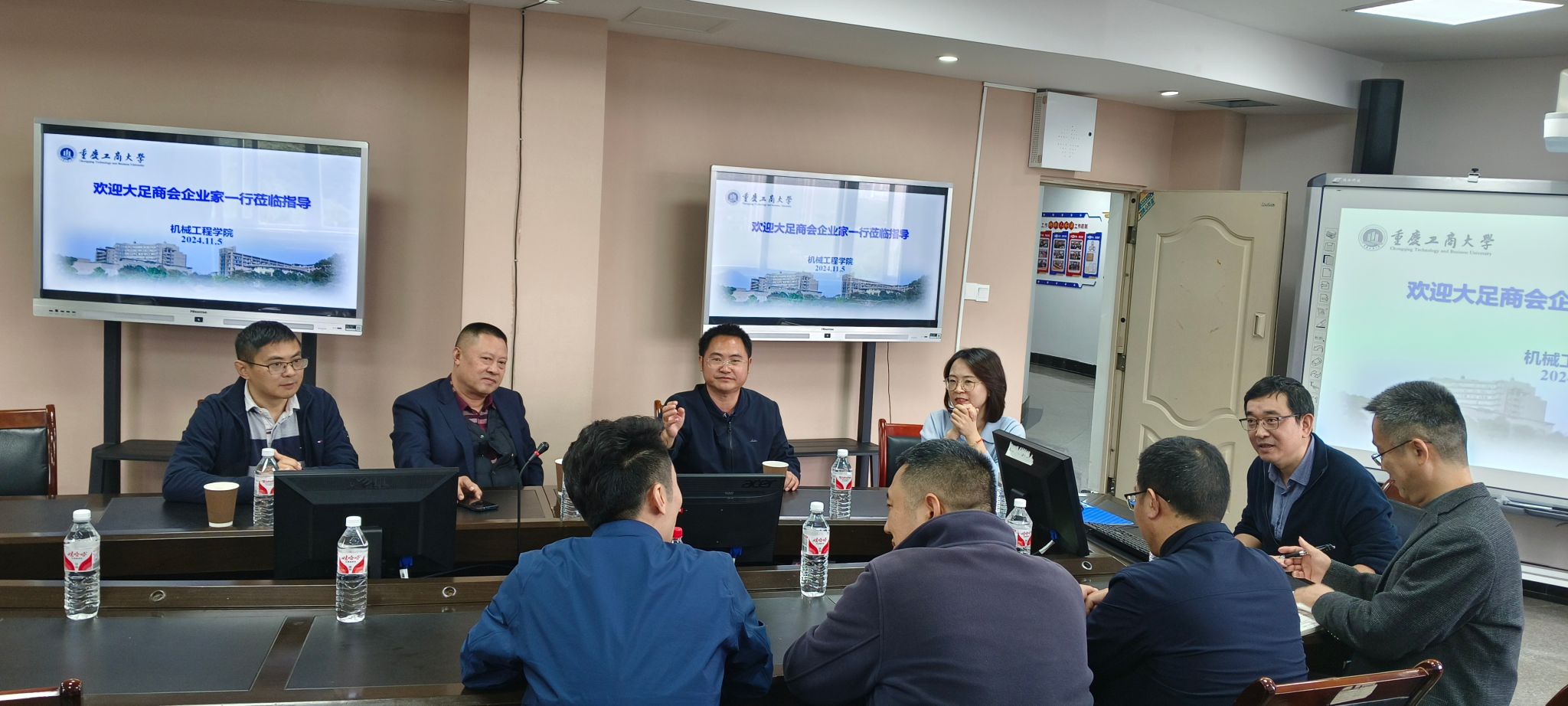 11月5日,广东省大足商会企业代表来校与机械工程学院开展交流,双方就校企合作、选人用人等相关内容进行座谈,机械工程学院相关领导出席座谈会。
