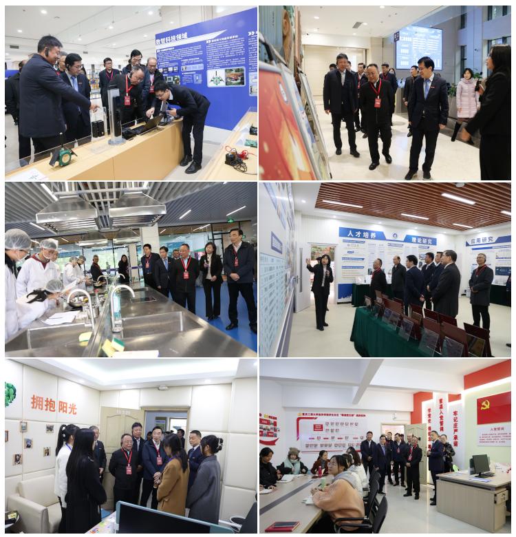 说明会结束后,专家组一行在曾维伦、柏群、杨柏等校领导陪同下,集中考察了图书馆(学校高质量发展成果展、学习环境)、重庆市食品营养与健康(火锅)现代产业学院、经济学拔尖人才培养基地。