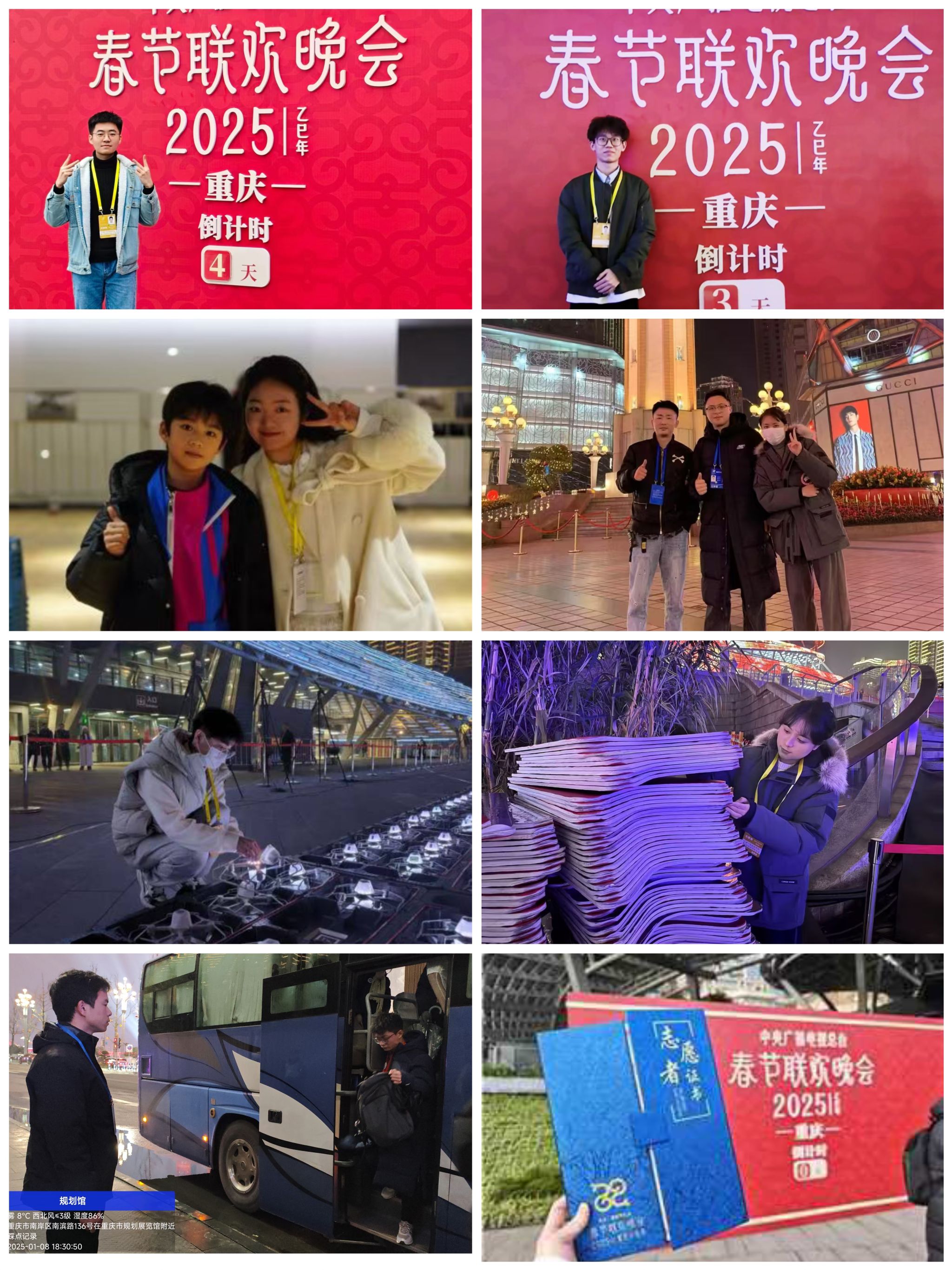 此次志愿者分别来自文学与新闻学院、金融学院、工商管理学院、会计学院、法学与社会学学院、人工智能学院、机械工程学院、环境与资源学院、艺术学院、国际商学院,他们以专业为纽带,在春晚筹备中发挥所长。文学与新闻学院学子以扎实的传媒素养承担主舞台无人机组调度、演员组协调等核心任务;艺术学院学生以审美功底助力服装组造型设计;人工智能学院与机械工程学院的志愿者则化身“技术后盾”,保障设备稳定运行。一个月的时间里,这群年轻人跨越寒冬,累计服务时长达1250小时,在“两江四岸灯光秀”“主舞台无人机组操控”“演员后勤保障”等多个岗位上默默坚守,始终以坚持不懈的热情服务迎接挑战。
