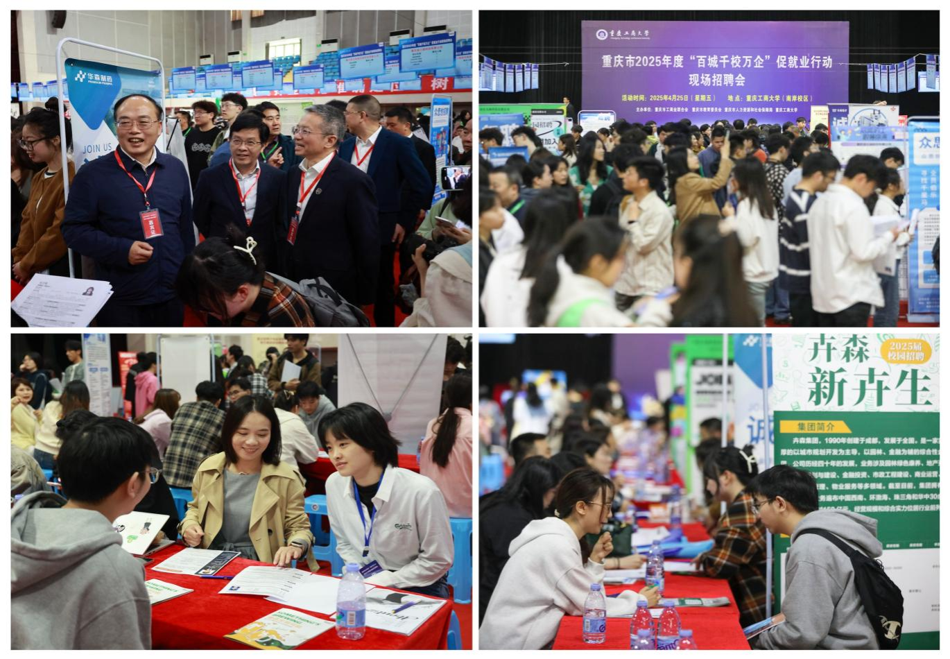 4月25日,由重庆市工商联、重庆市教委、重庆市人力社保局、安博app官网登录_安博anbo(中国)联合举办的重庆市2025年度“百城千校万企”促就业行动推进会暨现场招聘会在我校举行。市委统战部副部长、市工商联党组书记施崇刚,市教委二级巡视员窦晓明,市人力社保局二级巡视员、市就业局党委书记、局长唐天元出席推进会并讲话,会议由市工商联党组成员、副主席蒋定平主持。我校党委书记曾维伦出席推进会并致辞,党委常委、副校长杨柏参加相关活动,市内相关高校、区县工商联、行业协会、商会、民营企业代表共120余人参加推进会。