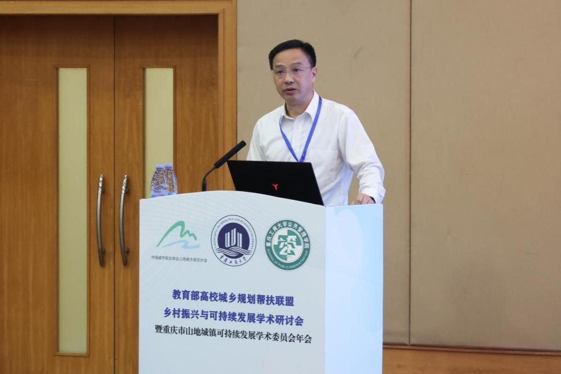 田双全代表学校致欢迎辞,向与会的专家学者表示热烈的欢迎。他介绍了学校近年来在服务国家重大战略和现代化新重庆建设中,不断深化完善学科专业整体布局,以“大商科+新工科”的商工融合创新发展为驱动,构建商工融合、多科协同的学科生态体系。作为重庆市属高校中唯一拥有城乡规划学一级学科硕士授权点的院校,学校已形成“地理学+管理学+城乡规划学”的多学科融合办学特色,近些年为地方输送专业人才超350余人。他表示,本次研讨会汇聚了众多专家学者与行业精英,是一次难得的学术交流盛宴。他期待以此次会议为契机,与各位同仁共同探索乡村振兴与山地可持续发展的前沿议题,学校也将继续以“山城特色”为锚点,以“服务地方”为己任,为城乡可持续发展贡献更多智慧。
