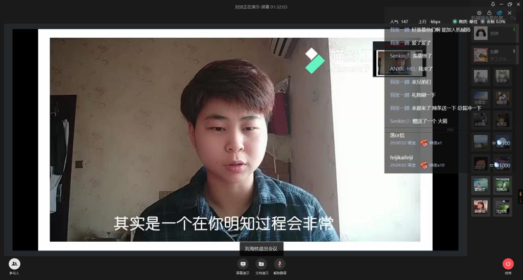 2020年4月3日,机械工程学院第五届“团队伴我成长”招募活动在线上召开,学院刘洋书记、杜力院长,学工办主任刘静、工程训练中心刘雪龙老师和学院2019级近200学生参加了此次招募活动,新生参与人数占2019级学生的近60%。招募活动由刘静主持。