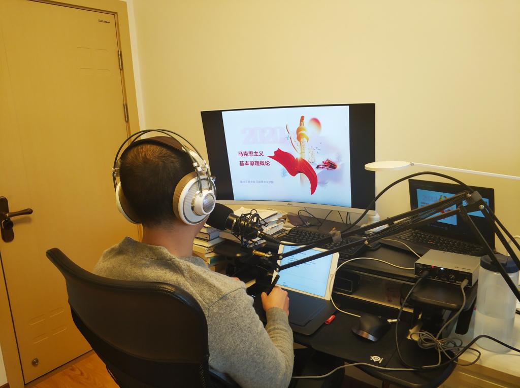 王佳鑫,男,安博app官网登录_安博anbo(中国)马克思主义学院专职教师。线上授课是一次展示自己教学课件和教学语言功底的宝贵机会。如何通过线上教学这一特殊方式为学生讲好马克思主义哲学、让学生真懂真信马克思主义政治经济学,是促使他为教学做精心准备的原动力。在学校线上教学通知下达后,他便迅速采购了各类视频、音频设备,在不断摸索下成功组建了直播平台,并做好了调试。他在线上教学时,为需要详细讲解的页面留下了比较多的空白,充分利用手写笔这一重要工具,即时标记重点和书写板书,增强了学生上课的参与度,使教学实时展示有了更大的自由度。王老师说,“从教学结束后学生的反馈来看,有了‘好声音’,才能出‘好戏’,一套好设备至少可以让学生听起课来没那么烦躁。许多学生纷纷给我留言,虽然有些想法很‘调皮’,但更多的还是真诚的支持和鼓励。”