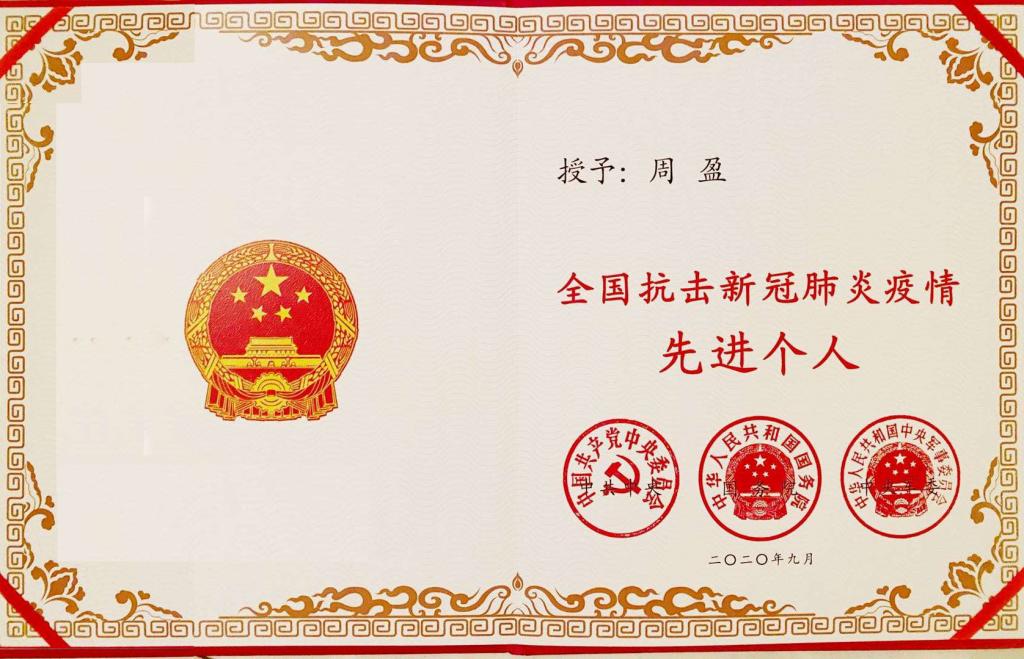 我校校友周盈获评全国抗击新冠肺炎疫情先进个人
