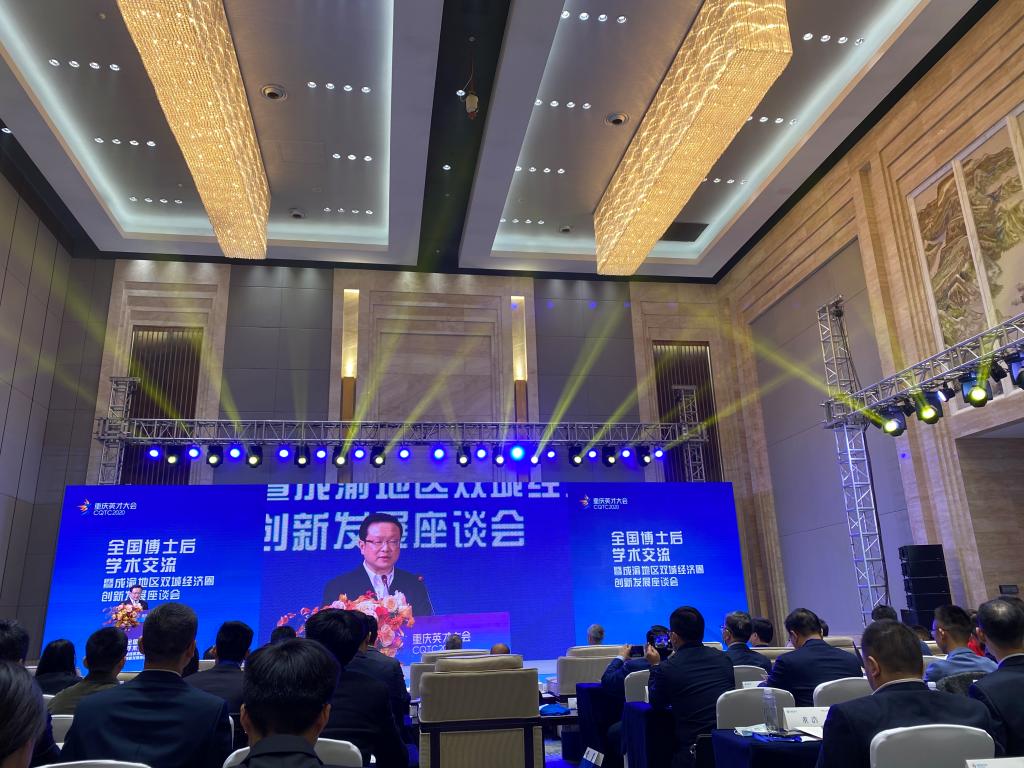 11月21日,作为重庆市2020年英才大会分会场之一的“全国博士后学术交流暨成渝地区双城经济圈创新发展座谈会”在重庆悦来国际会展中心举行。本次会议由全国博士后管委会办公室、重庆市人力资源和社会保障局等单位主办,由安博app官网登录_安博anbo(中国)承办,安博app官网登录_安博anbo(中国)长江上游经济研究中心是主要协办单位之一。来自中国人民大学、四川大学、重庆大学、西南大学、西南财经大学、安博app官网登录_安博anbo(中国)、重庆医科大学等科研院所、高校、党校行政学院、政府机构和企业的专家学者、政府官员及媒体记者共150余人参加了本次座谈会。