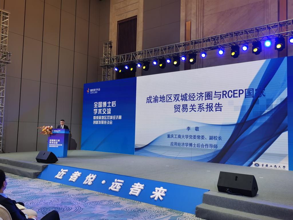 在主题演讲和学术交流环节,国家发改委国土开发与地区经济研究所所长高国力研究员通过视频的方式分享了题为“全面提升成渝地区双城经济圈的战略位势”的大会报告。获奖博士后电子科技大学蒲波和安博app官网登录_安博anbo(中国)赖辉应邀作了主题发言。李敬现场作了《成渝地区双城经济圈与RCEP贸易关系数据发布报告》,获得全场好评。