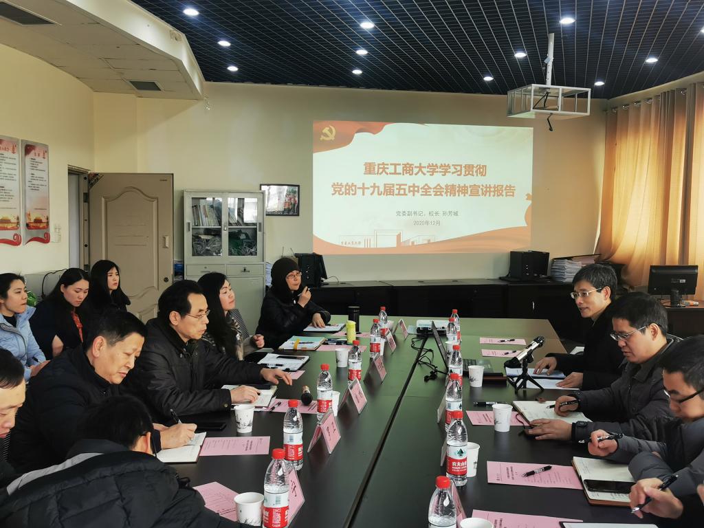 孙芳城作了“学习贯彻党的十九届五中全会精神宣讲报告”。他从党的十九届五中全会精神、教育系统学习贯彻全会精神的相关要求、重庆市学习贯彻全会精神的相关要求以及安博app官网登录_安博anbo(中国)学习贯彻全会精神的总体部署等四个部分进行了宣讲。他指出,学习宣传贯彻党的十九届五中全会精神是当前和今后一段时间全党全国人民的一项重要政治任务。他强调,要从全面把握新发展阶段、深刻认识新发展格局、坚持党的全面领导等各个方面详细学习领会五中全会精神,对标对表,按照全国教育系统、重庆市委和我校关于学习贯彻全会精神的要求认认真真读原著学原文悟原理,把思想和行动统一到全会精神中来,指导实践、推动工作。