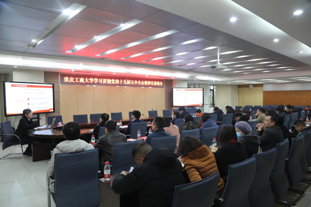 孙芳城从党中央、教育系统、重庆市委、学校四个层面学习贯彻全会精神的相关要求,对全会精神进行了系统解读和宣讲。他指出,面对错综复杂的国际形势、艰巨繁重的国内改革发展稳定任务特别是新冠肺炎疫情严重冲击,要深刻领会党的十九届五中全会的全局性和历史性意义,深刻认识我国进入新发展阶段的重大意义和重要特征。他宣讲了习近平总书记在全会上提出的一系列新思想新观点新论断新要求,对“十四五”时期我国经济社会发展的主要目标和2035年远景目标进行了深入浅出的讲解。
