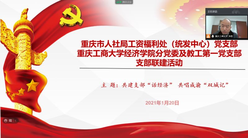 1月20日上午,我校经济学院分党委同市人社局工资福利处(统发中心)党支部通过腾讯会议在线开展了主题为“共建支部‘话经济’,共唱成渝‘双城记’”的支部联建活动。市人社局工资福利处处长程卫民、人社局规划财务处处长谷亚、人社局直属机关党办主任胡剑、市机关事业单位工资统发中心主任宋晓辉、经济学院分党委书记李自维、正处级组织员雷菁、市人社局工资福利处(统发中心)党支部和我校经济学院分党委教工第一党支部全体党员近60人参加了会议。