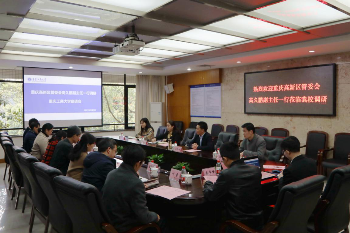 3月5日,重庆高新区管委会副主任高久鹏一行到我校调研座谈。高新区财政局一级调研员彭晏秋,创新服务中心企业发展部部长陈超,我校校长孙芳城、副校长柏群,科研处、金融学院、人工智能学院、会计学院,数字与统计学院等有关部门和学院负责人参加了会议。会议由柏群主持。