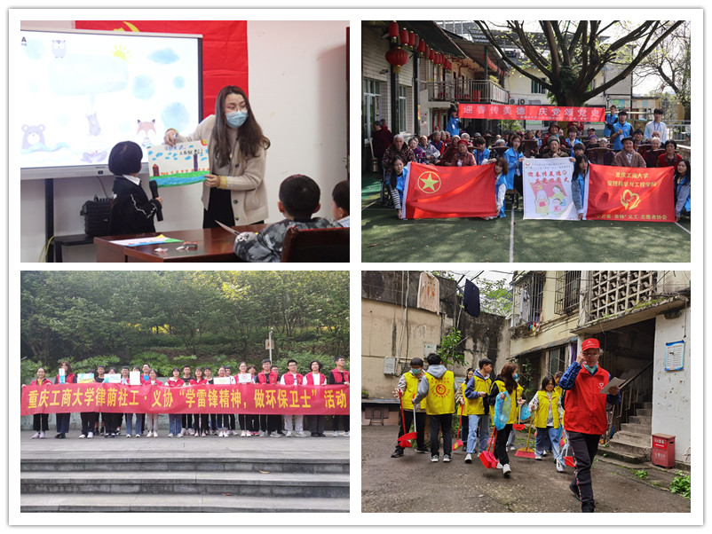 3月5日,校义协在线上发起了“三月天雷锋月,学雷锋沐春风”的话题互动和空间集赞活动,同时在校内开展“雷锋精神传工商”快闪活动、“洁小清”校园环保行动,拉开了雷锋月活动的序幕。雷锋日当天,金融学院义协赴黄桷坪新市场社区开展河道清洁活动,人工智能学院举办爱心雨伞活动;3月6日至14日,工商管理学院义协开展益心益易活动,法学与社会学学院开展“雷锋活动月——律荫社工义协消费者权益普法”活动,为校内师生进行法律知识普法宣讲;图书馆志愿者协会走进社区开展“观京剧脸谱,感国粹魅力”传统文化宣讲;15日—21日,校义协“公益义卖,小善大爱”向日葵爱心义卖在南岸校区,兰花湖片区,江北校区同时进行,共筹到善款2000余元;管理科学与工程学院、会计学院、机械工程学院义协开展了“书写三行愿,传递雷锋情”线上活动、雷锋故事会—讲出你身边的雷锋故事等活动;24日—26日,校义协“与书香作伴,与志愿同行”爱心捐书活动在江北校区举行;20日—30日,工商管理学院、国际商学院、公共管理学院义协先后开展了世界水日活动、植树节活动、垃圾分类、龙脊山垃圾捡拾活动等一系列绿色志愿服务活动;数学与统计学院、艺术学院、现代国际设计艺术学院、通识学院义协也开展了“粒粒粮食要爱惜•节约粮食我做起”光盘倡议行动、启音阳光助残关爱帮扶活动、自习室打卡等活动。同时,体育学院、环境与资源学院、文学与新闻学院、经济学院、外国语学院也结合专业特色走进社区和服务基地开展了丰富多彩的爱心志愿服务,在校园内外掀起了一股学雷锋树新风的热潮。